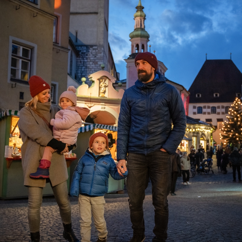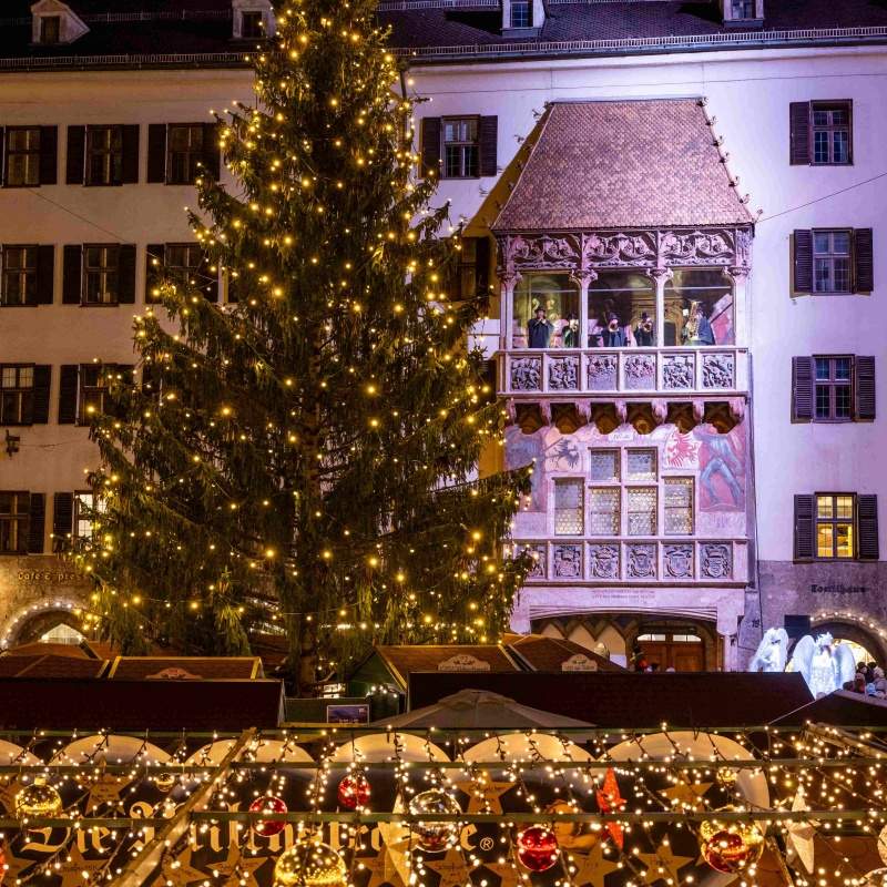 In Tirols Landeshauptstadt freut man sich wieder auf die Bergweihnacht Innsbruck. Zwischen vielen Marktständen, frisch gebackenen Kiachln und dem 18 Meter hohen Christbaum begegnen Besucher:innen des traditionellen Marktes in der Innsbrucker Altstadt Märchenfiguren und Riesen. Nicht weit entfernt am Marktplatz drehen Kinder auf dem nostalgischen Karussell ihre Runden, in der Maria-Theresien-Straße zieren überdimensionale Riesenchristbaumkugeln und Leuchtbäume den Christkindlmarkt. Besinnliche Stimmung herrscht vor allem auf den kleineren Märkten am Wiltener Platzl, in St. Nikolaus, am Bergisel und auf der Hungerburg, wo sich eine grandiose Aussicht über Innsbruck bietet.