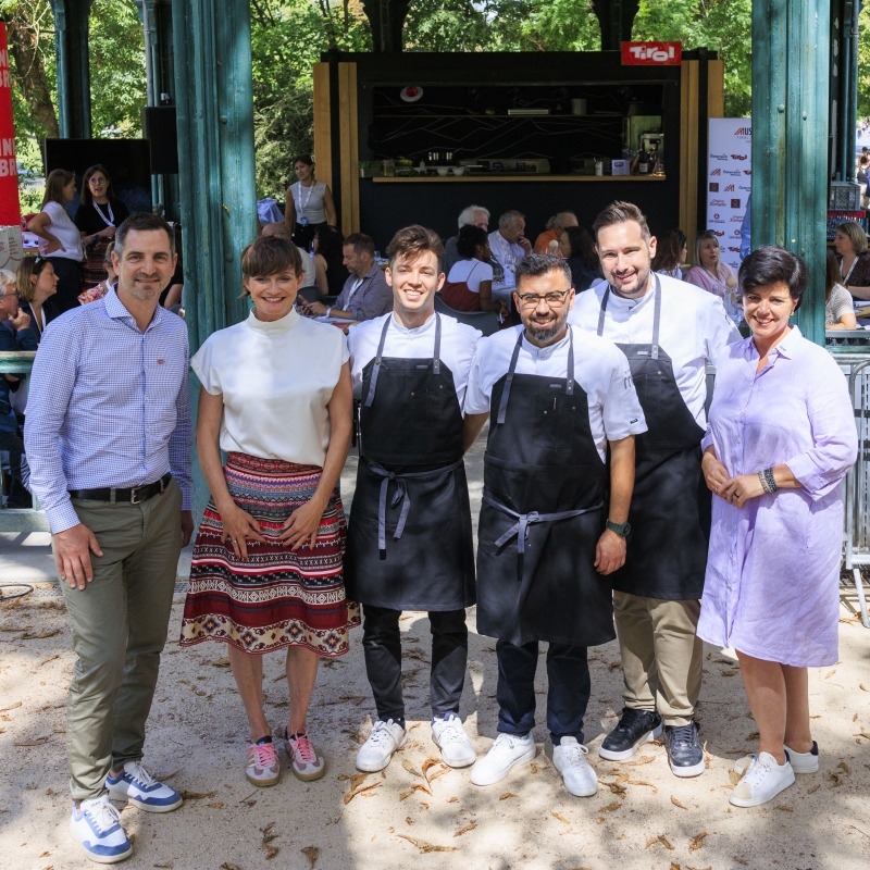Auf höchstem Niveau „eingekocht“ wurde die französische Reiseelite von drei Tiroler Kochvirtuosen. Die Spitzenköche Michael Ploner, Olli Mijic und Philipp Stohner betreiben in Nauders im Tiroler Oberland das kleine, feine Gourmetrestaurant s’kammerli. Ihr Kochstil: jung, kreativ, überraschend und gleichzeitig bodenständig und regional tief verwurzelt. So launig der sommerliche Reisegipfel im Pavillon des Parks Montsouris direkt vor dem Austria House Tirol war, so ehrgeizig zeigten sich die Gäste beim gemeinsam Kaiserschmarrn-Kochen und vor allem beim Quiz mit Wissensfragen zu Österreich, Tirol und Innsbruck. Kein Wunder, wurden doch tolle Preise – darunter auch ein Innsbruck-Urlaub – ausgelobt.