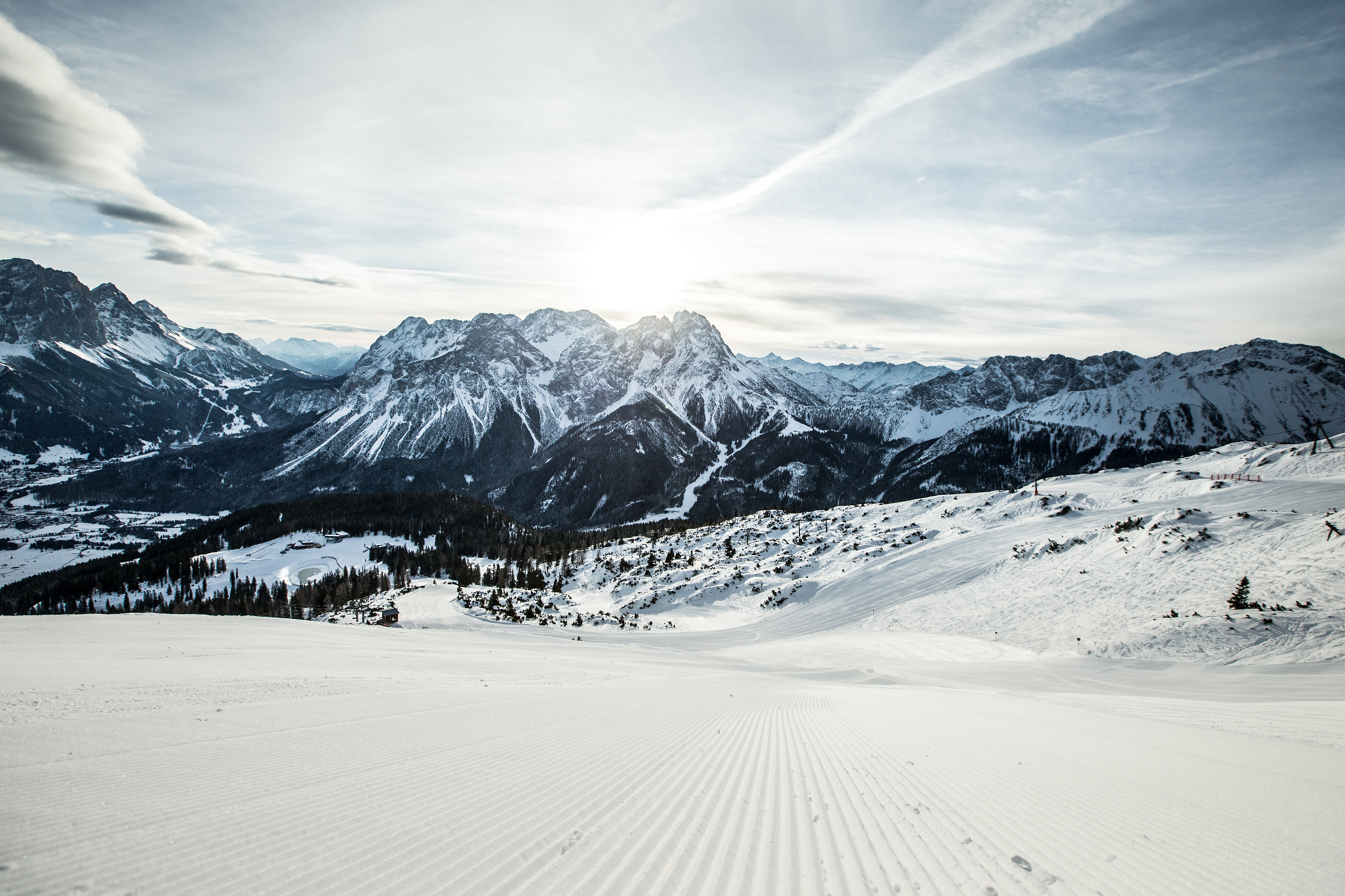 Sonnige Familienskigebiete mit Aussicht auf die Zugspitze