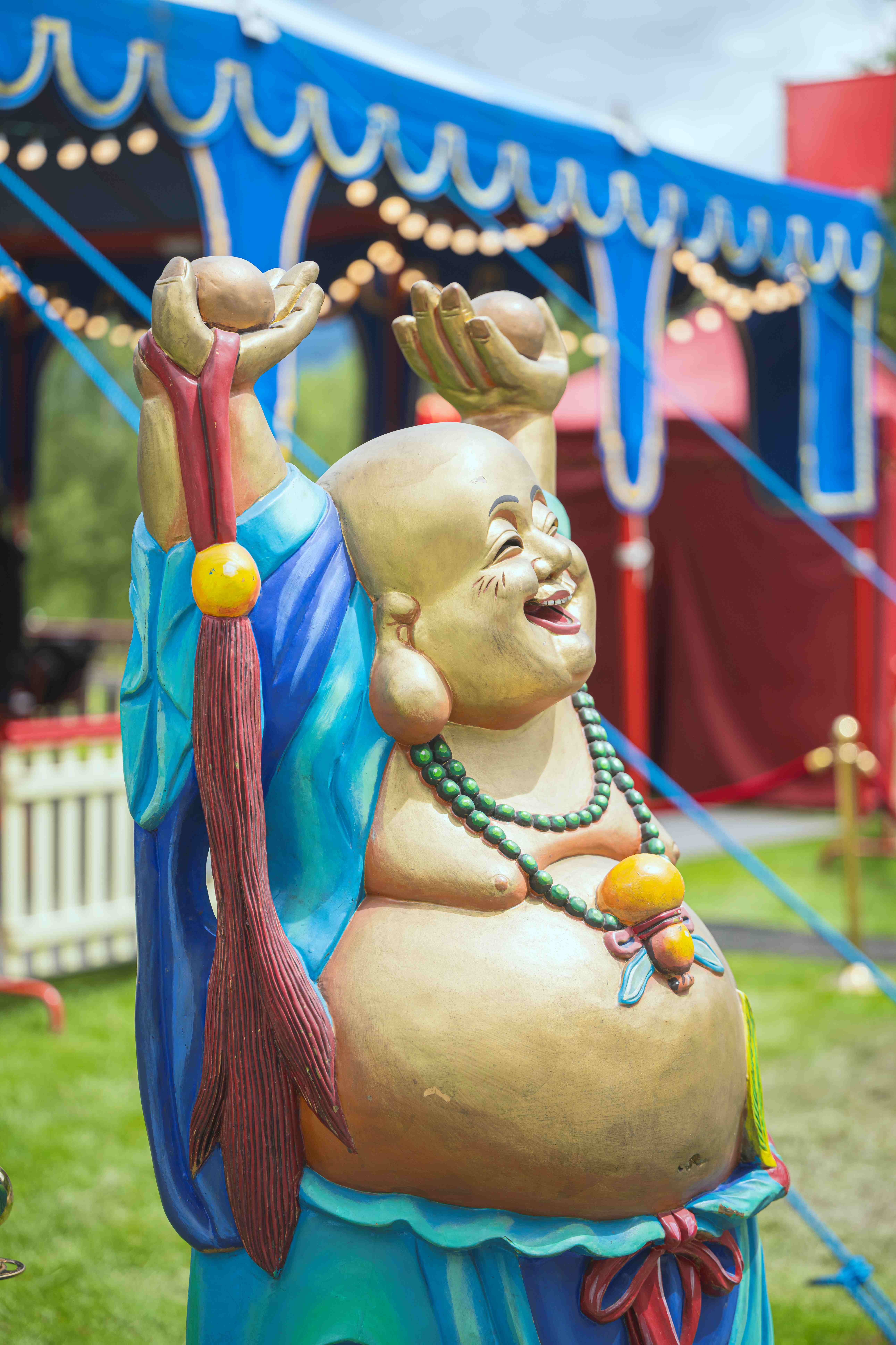 Die Atmosphäre Asiens ist überall im Garten der Swarovski Kristallwelten spürbar. Traditionelle Eingangsportale und Lampions erwarten die Besucher*innen, während rote Miniatur-Zirkuszelte Einblicke hinter die Kulissen erlauben und das „Wishing Gate“ die Wünsche der Gäste (vielleicht) wahr werden lässt.