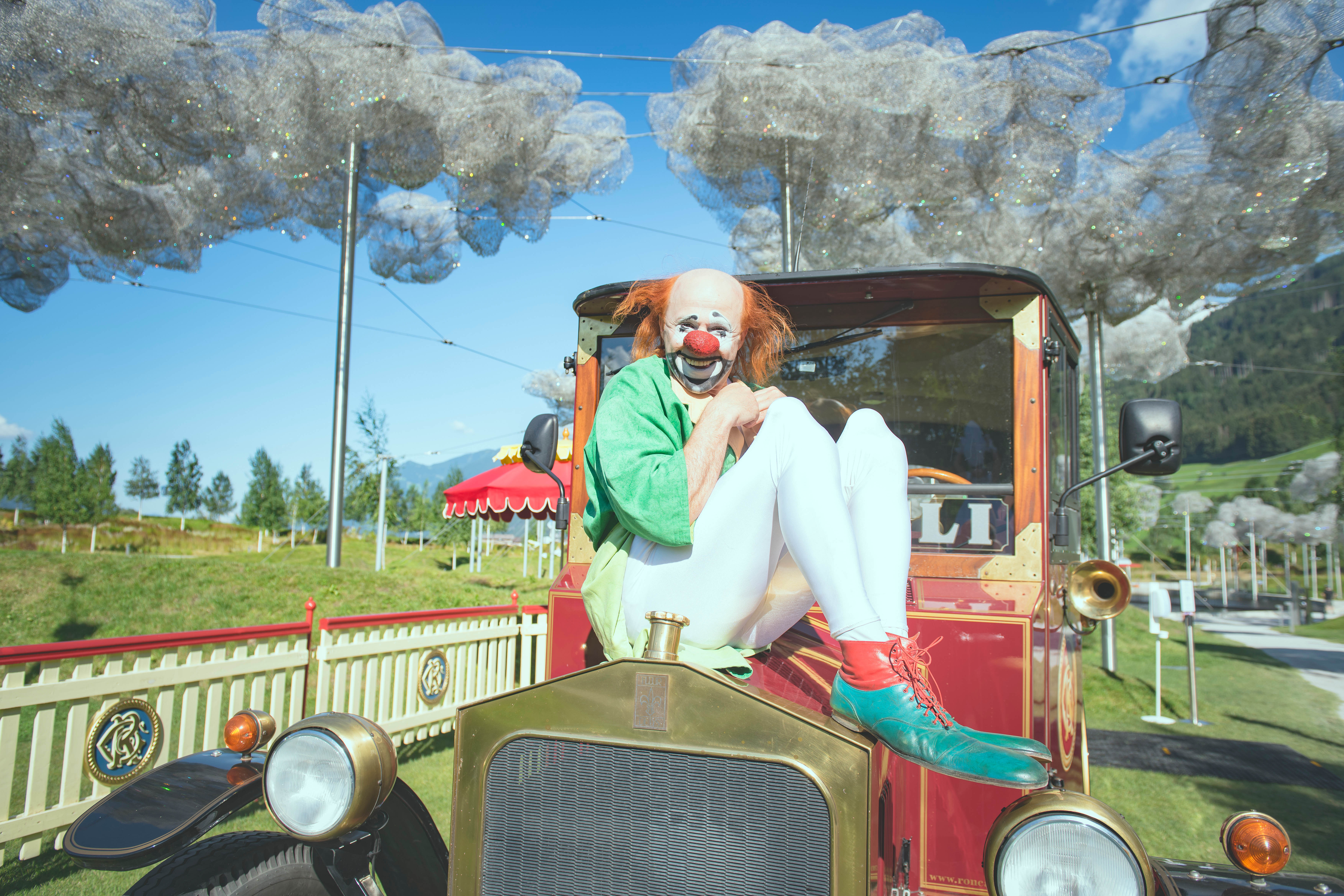 Die Attraktionen: Oldtimer, Zirkuswagen und SchaugeschäftDirekt vor dem Riesen erwartet Roncalli‘s Miniatur-Chapiteau, ein kleines Zirkuszelt mit der Innenausstattung einer Artistengarderobe und der Büste des dummen August Zippo, die Besucher. Hinter Roncallis berühmtestem Clown steckt kein geringerer als Roncalli-Legende Bernhard Paul höchstpersönlich. Die überlebensgroße Büste, als Schaufensterdekoration in den Roncalli Werkstätten entworfen und gebaut, vermittelt die kindliche Spielfreude des Clowns und ist die perfekte Kulisse für ein Selfie.