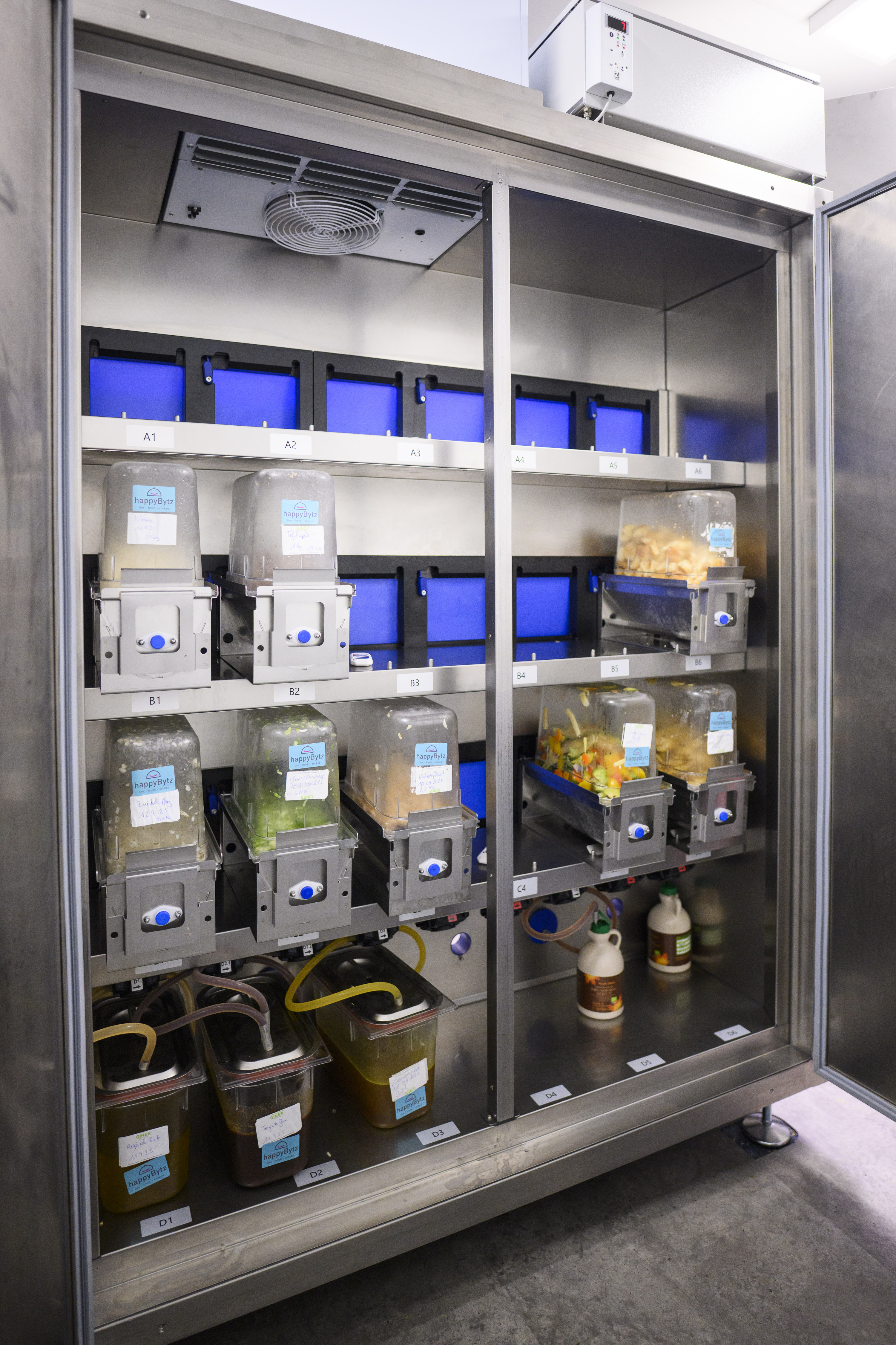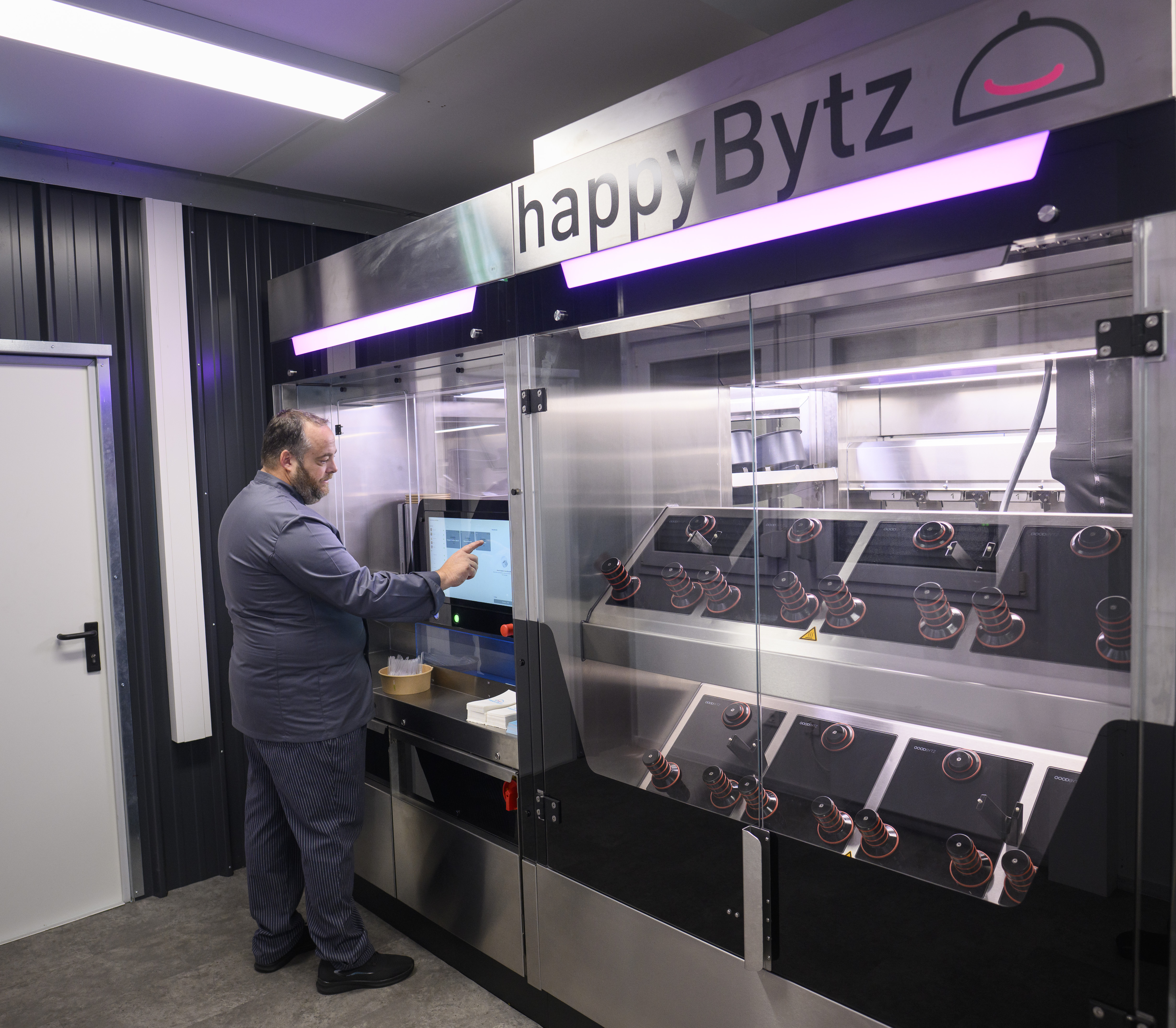 Die von goodBytz entwickelten Küchenassistenzsysteme arbeiten teil- oder vollautonom und produzieren frisch zubereitete, vollwertige Gerichte. Die Technologie basiert auf bewährter Gastronomie-Hardware wie Kochstationen, Spül- und Kühlsystemen sowie temperierten Vorratsschränken für frische Zutaten. Hochpräzise Roboterarme, innovative Toppingstationen sowie ein digitales Bestellsystem komplettieren das System. Die von happyBytz entwickelten Rezepte können an Kundenwünsche angepasst werden, sind exakt auf die eingesetzten Zutaten abgestimmt und garantieren so eine gleichbleibend hohe Qualität – innerhalb weniger Minuten zubereitet. goodBytz bietet aktuell fünf unterschiedlich große Modelle an: Das kleinste Modell bereitet frische, kalte Mahlzeiten wie gesunde Bowls zu. Die größeren Küchen können, je nach Ausführung, bis zu 20 verschiedene warme Gerichte produzieren – mit einer Kapazität von bis zu 150 Essen pro Stunde bzw. bis zu 1.200 pro Tag.