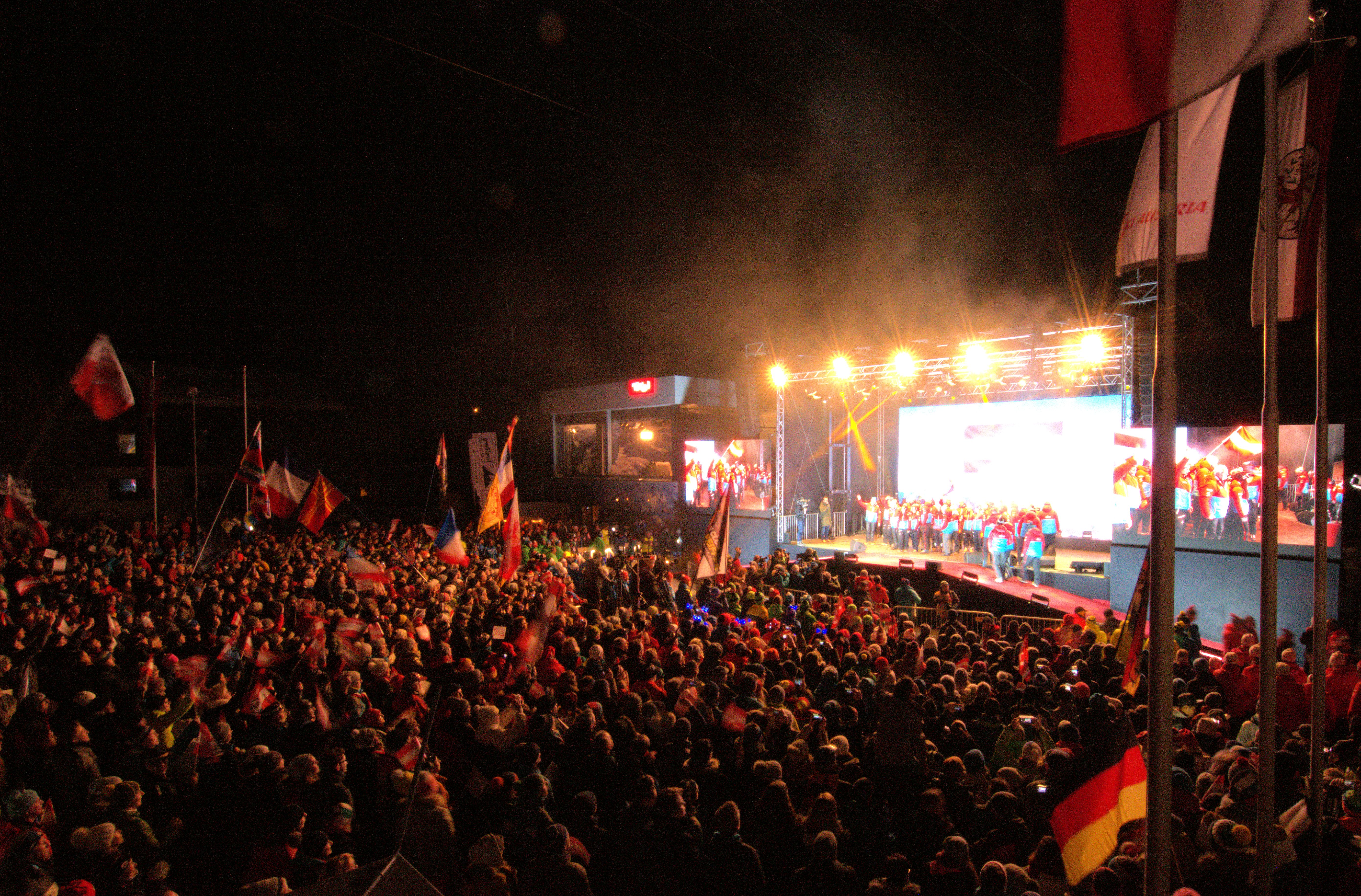 Der Ort könnte nicht prominenter sein – direkt an der Medal Plaza gelegen, bittet der TirolBerg in den nächsten Tagen Athleten, Journalisten und Partner zum Stelldichein. So erfolgte auch die Eröffnung des beliebten Treffpunkts direkt vor der offiziellen Feier zum Start der Biathlon Weltmeisterschaften 2017 in Hochfilzen. Zahlreiche Medienvertreter nützten bereits die Gelegenheit, um DJ Ötzi, Hubert Trenkwalder oder Zabine schon vor ihrem Auftritt bei der Eröffnungsfeier zu treffen.