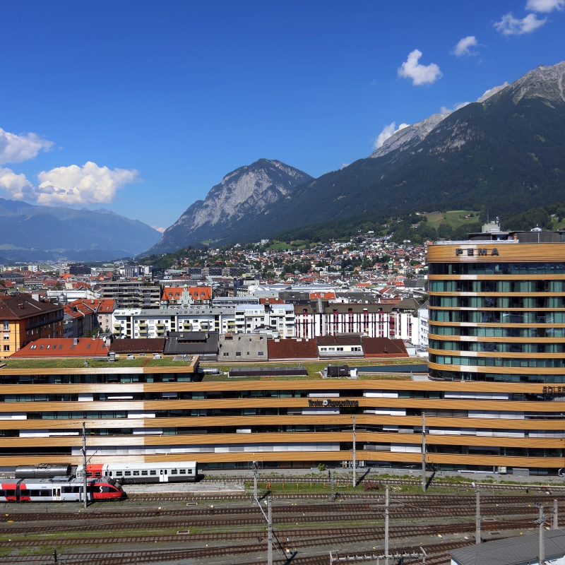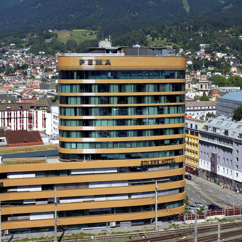 Die PEMA Holding hat für „Headline“ 21.000 m² Flächen für Hotel- & Büronutzung errichtet. Auch umliegende Geschäftsflächen profitieren von der Aufwertung des Geländes rund um den Innsbrucker Hauptbahnhof. Um auch die Öffentlichkeit miteinzubeziehen wurde die Dachterrasse im 13. Obergeschoss mit einem 360° Panoramablick für Besucher frei zugänglich gemacht.