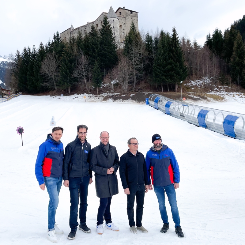 Vor dem Saisonstart 2022/23 erweiterte die Winter.Wunder.Welt in Nauders ihr Angebot für Kinder. Investiert wurde in ein überdachtes Förderband. Die Hälfte der Baukosten von rund 240.000 Euro übernahm das Land Tirol, den Rest teilten sich die Gemeinde Nauders und der Projektträger TVB Tiroler Oberland. Bereits mehr als 120.000-mal wurden Kinder in diesem Winter mit dem neuen 39 Meter langen Zauberteppich befördert. Wirtschafts- und Tourismuslandesrat Mario Gerber zieht eine erste positive Bilanz.