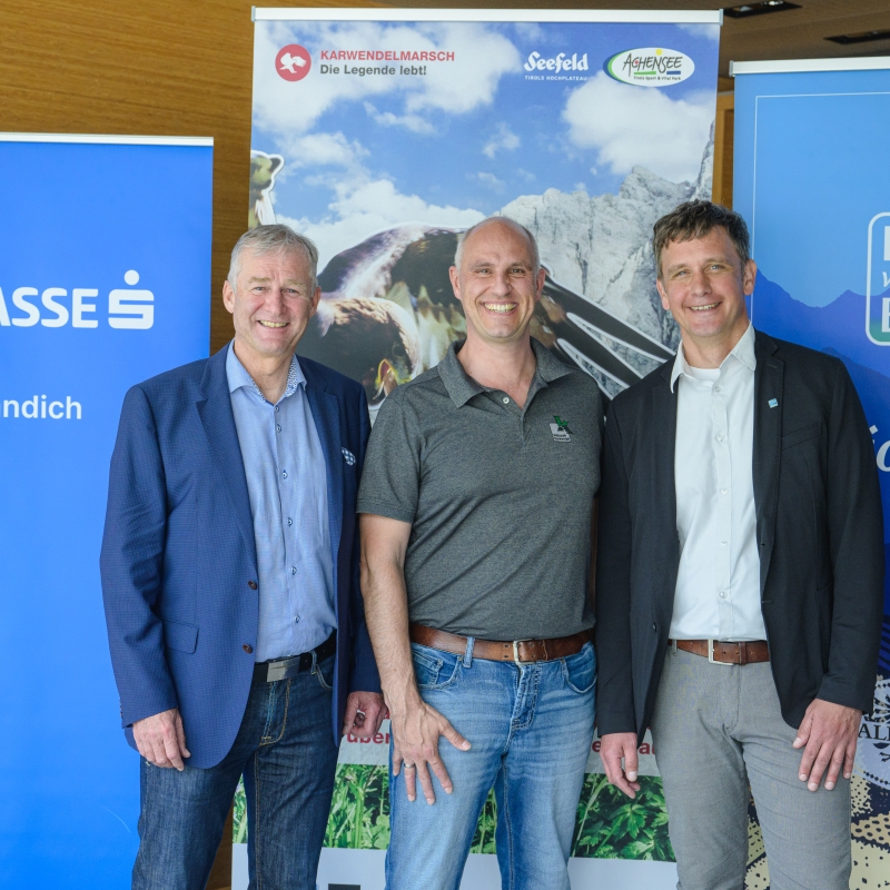 Drei Karwendelmarsch-Partner freuen sich auf den 26. August 2023 (v.l.): Hermann Nagiller, Anton Heufelder und Björn Rasmus.