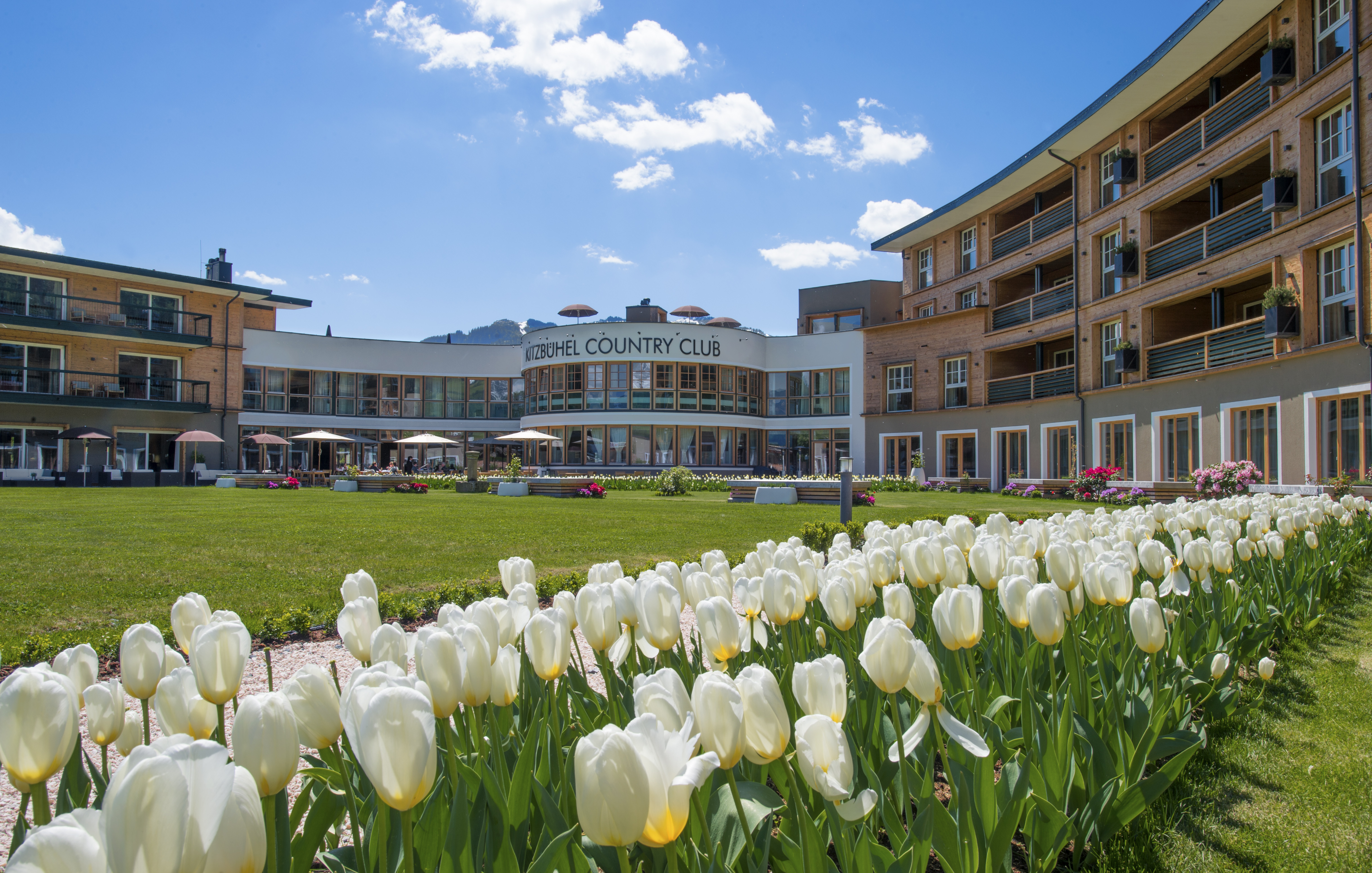 Zeitgemäße alpine Architektur zeichnet den Kitzbühel Country Club aus.