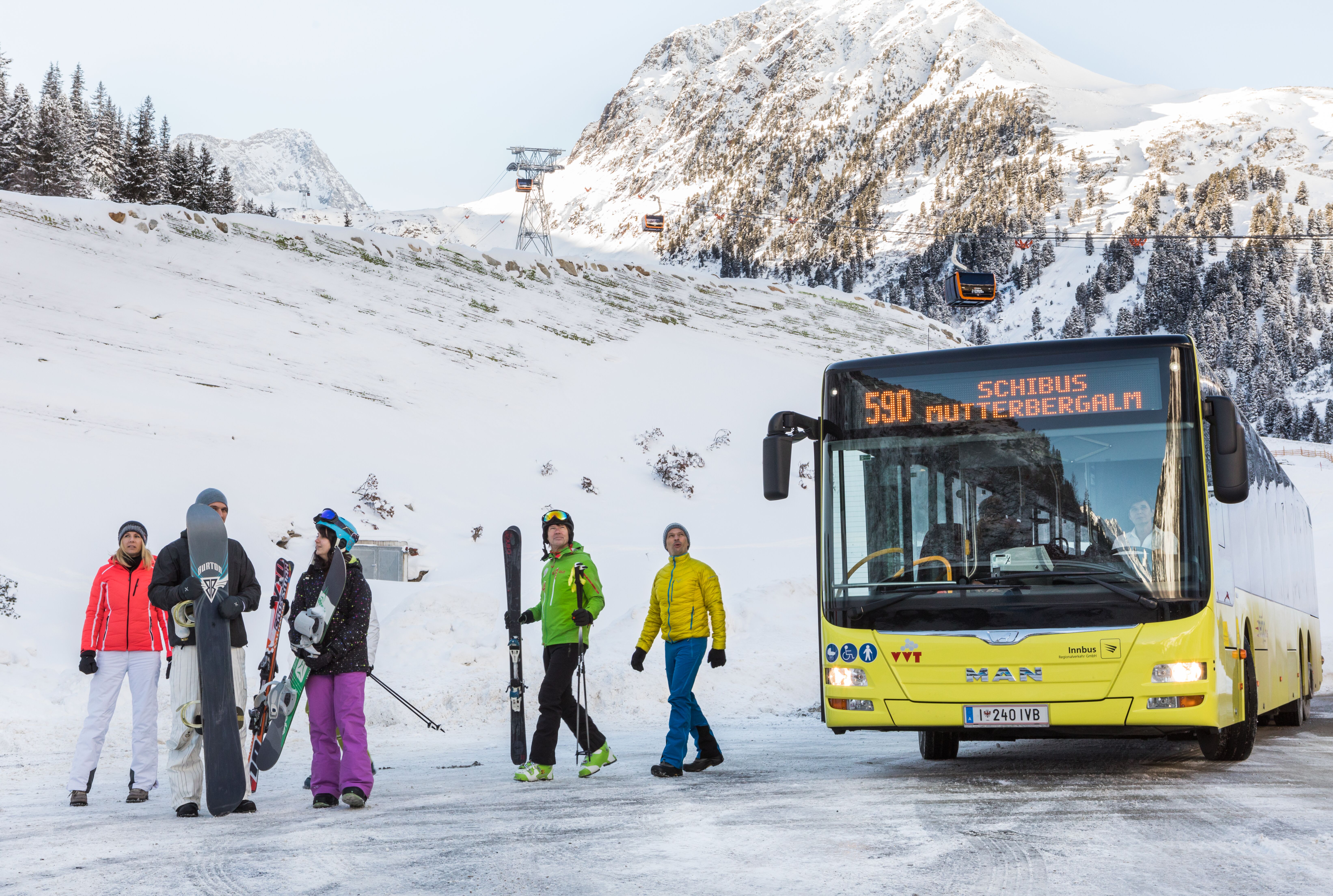 Innerhalb des Tals erhalten Winterurlauber*innen ein Rundum-Sorglos-Mobilitätspaket: Mit gültigen Skipässen der Region oder in Wintersportbekleidung und -ausrüstung sind die Fahrten zu den Bergbahnen, Loipen, Rodelbahnen sowie Winterwanderwegen kostenlos. Die Skibusse verkehren mindestens alle 30 Minuten und bringen Gäste direkt in die vier Stubaier Skigebiete. Dazu gehört auch das sogenannte „Stubuss’l“ – die Buslinie 595 verbindet die fünf Ortschaften flexibel, fährt das Freizeitcenter StuBay an und verkehrt bis spät abends.