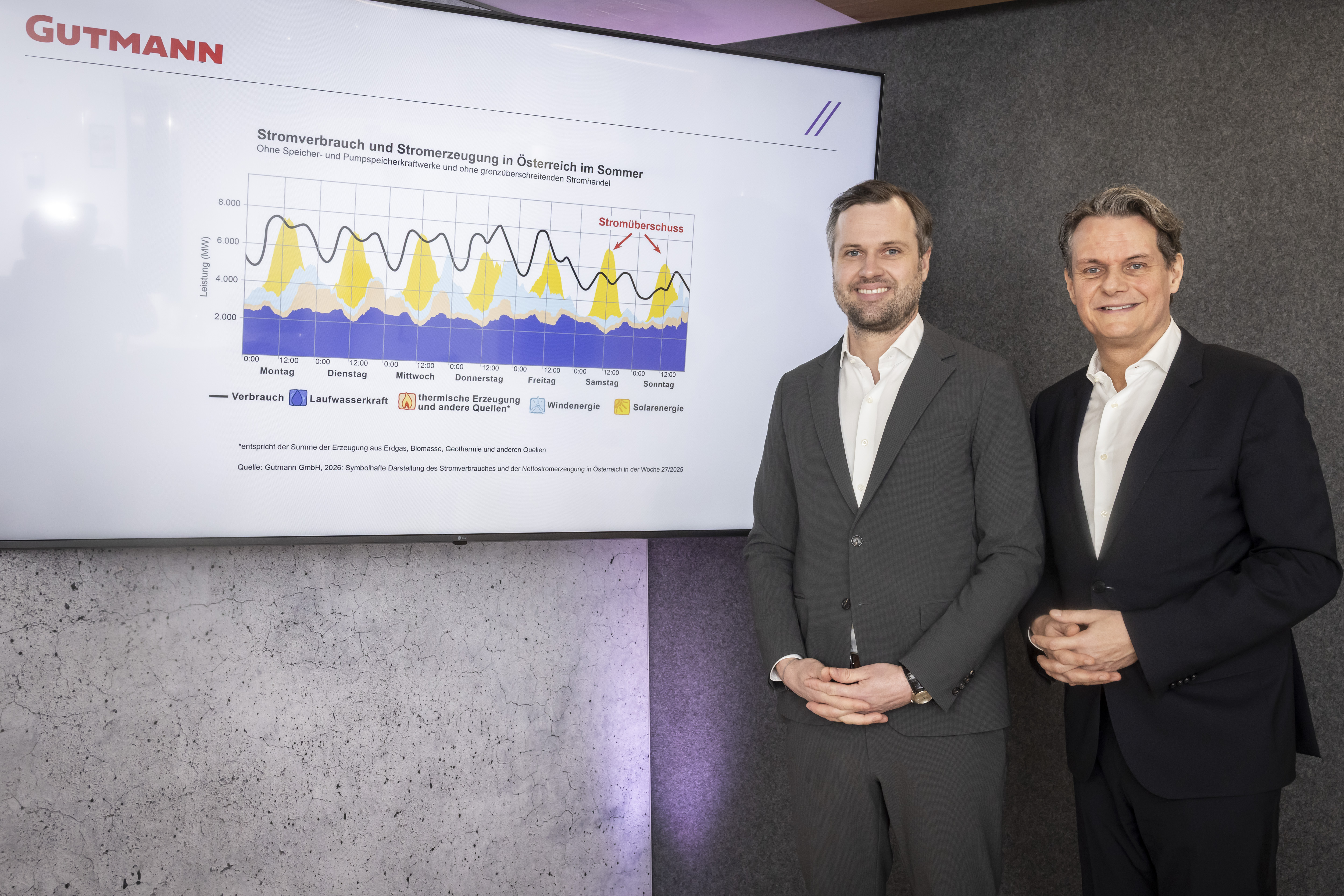 „Mit unserem HAPPY HOUR-Angebot machen wir Sonnenstrom für alle nutzbar – auch für Haushalte ohne eigene PV-Anlage. Gleichzeitig setzen wir ein klares Signal: Wer Strom dann nutzt, wenn er günstig und reichlich vorhanden ist, spart Kosten und hilft zugleich auch noch mit, den Strommarkt zu stabilisieren“, betont Alexander Gutmann, Geschäftsführer der Gutmann GmbH. Horst Ebner, Leiter der Strom- und Gasabteilung bei Gutmann, unterstreicht die Bedeutung des neuen Ansatzes in puncto Preisgestaltung: „Die Energiewende funktioniert dann besonders gut, wenn Erzeugung und Verbrauch zusammenpassen. Mit unserem neuen Tarif laden wir unsere Kunden ein, Strom genau dann zu nutzen, wenn viel erneuerbare Energie verfügbar ist – das schont das System, senkt Kosten und bringt die Energiewende in den Alltag.“