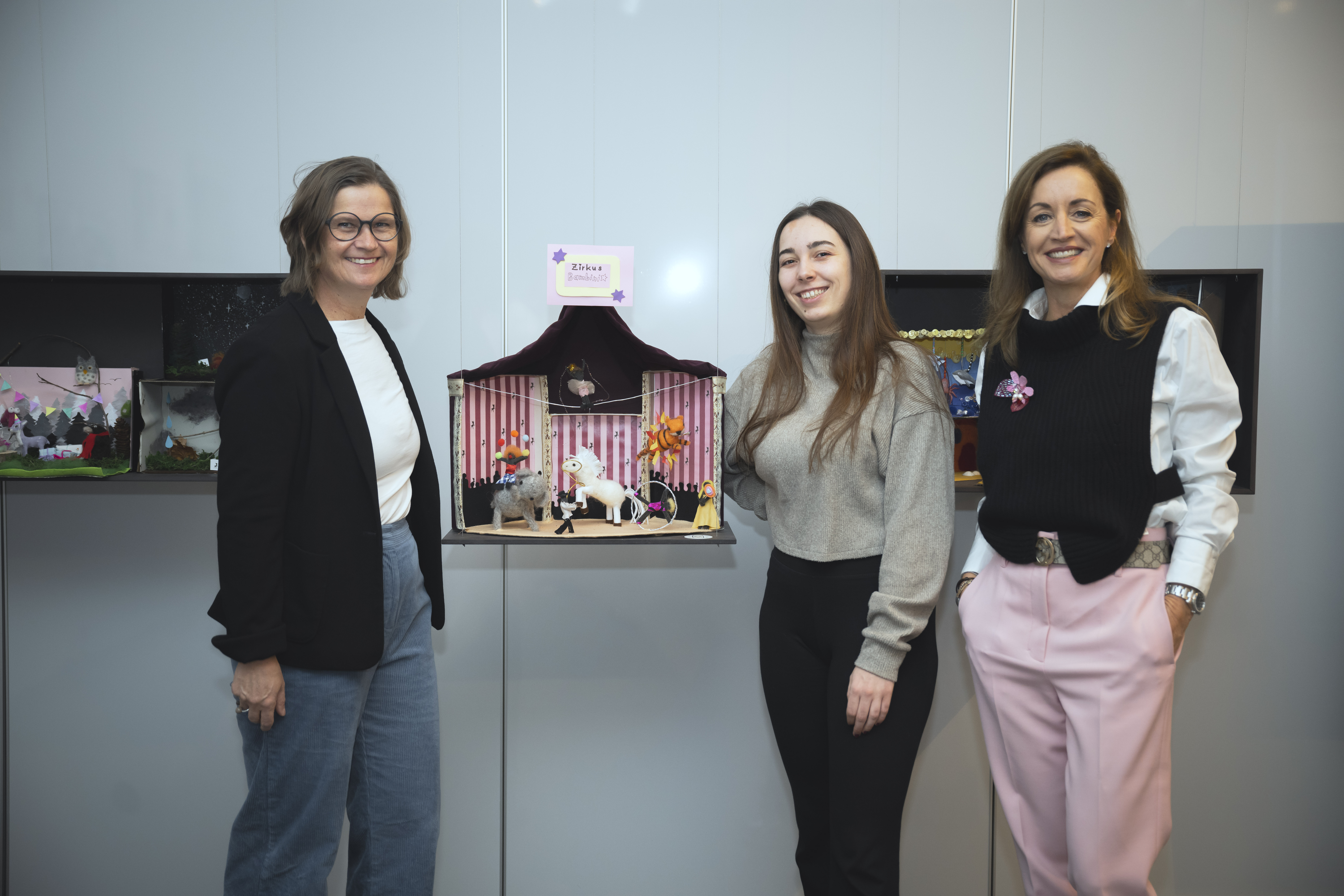 „Die Kreativität der Kinder war beeindruckend und hat das gesamte Team motiviert. Ihre Arbeit hat gezeigt, wie viel Freude sie am Geschichtenerzählen haben“, so Projektleiterin und Künstlerin Claudia Haas, Leiterin des Lehrgangs Schwerpunktausbildung Kreatives Schaffen. Das Ziel dieses innovativen Projekts war es, die Welt des Hörens auf spielerische und kreative Weise erfahrbar zu machen. Neben der fantasievollen Gestaltung von Schuhkartons in eine Art Erlebniswelt, entwickelten die Studierenden und Kinder zu jeder Erzählkiste auch noch passende Hörspiele und Podcasts. Barbara Schallenmüller, Dozierende an der PHT: „Solche Projekte sind entscheidend, um die Verbindung zwischen Theorie und Praxis zu stärken. Die Zusammenarbeit mit den Kindern zeigt, wie wichtig es ist, kreative Prozesse zu initiieren und zu begleiten, um das kreative Potenzial zu fördern.“ Für Gabriele Bittner, Pädagogin an der Praxisvolksschule Innsbruck, war es „besonders interessant zu beobachten, mit welch‘ unterschiedlichen Herangehensweisen die Studierenden dem Projekt begegnet sind. Während einige sehr konkrete Geschichten vorgegeben haben, ließen andere den Kindern sehr viel Freiraum für Interpretation und Gestaltung.“ Julia Sparber-Ablinger, Direktorin des AUDIOVERSUM Science Centers, unterstrich die Relevanz solcher Projekte: „In der heutigen Zeit, in der digitale Medien allgegenwärtig sind, ist es wichtig, dass Kinder lernen, ihre Gedanken kreativ auszudrücken.“ Bei Marie Schubert, Studierende der PHT, steht der Praxisbezug im Vordergrund: „Wenn man noch im Studium ist, dann macht einem jede Möglichkeit zur Arbeit mit Kindern besonders viel Freude und genau so war es auch bei diesem Projekt.“