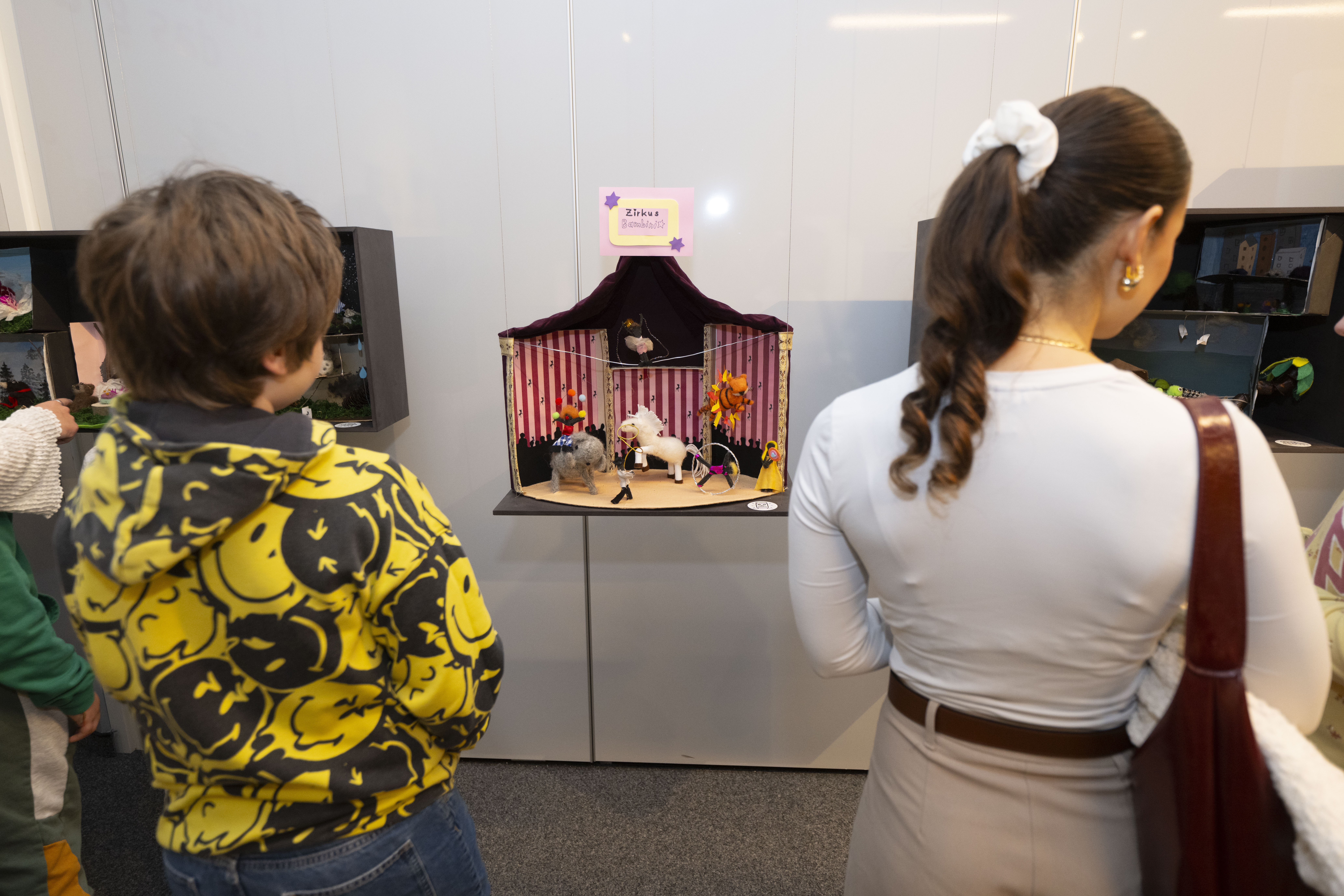 Im Rahmen des Unterrichts „Kreatives Schaffen“ wurde die Welt des Hörens auf spielerische Weise erfahrbar gemacht. Die Studierenden entwickelten mit den Kindern Hörspiele und Podcasts, die von spannenden Geschichten, Experimenten mit Klängen und musikalischen Elementen leben. Herzstück sind „Erzählkisten“, in denen Bild und Ton ein stimmungsvolles Gesamtbild ergeben. Die Ausstellung ist noch bis Ende des Schuljahres 2025 in der Audioversum-Werkstatt zu sehen und zu hören.