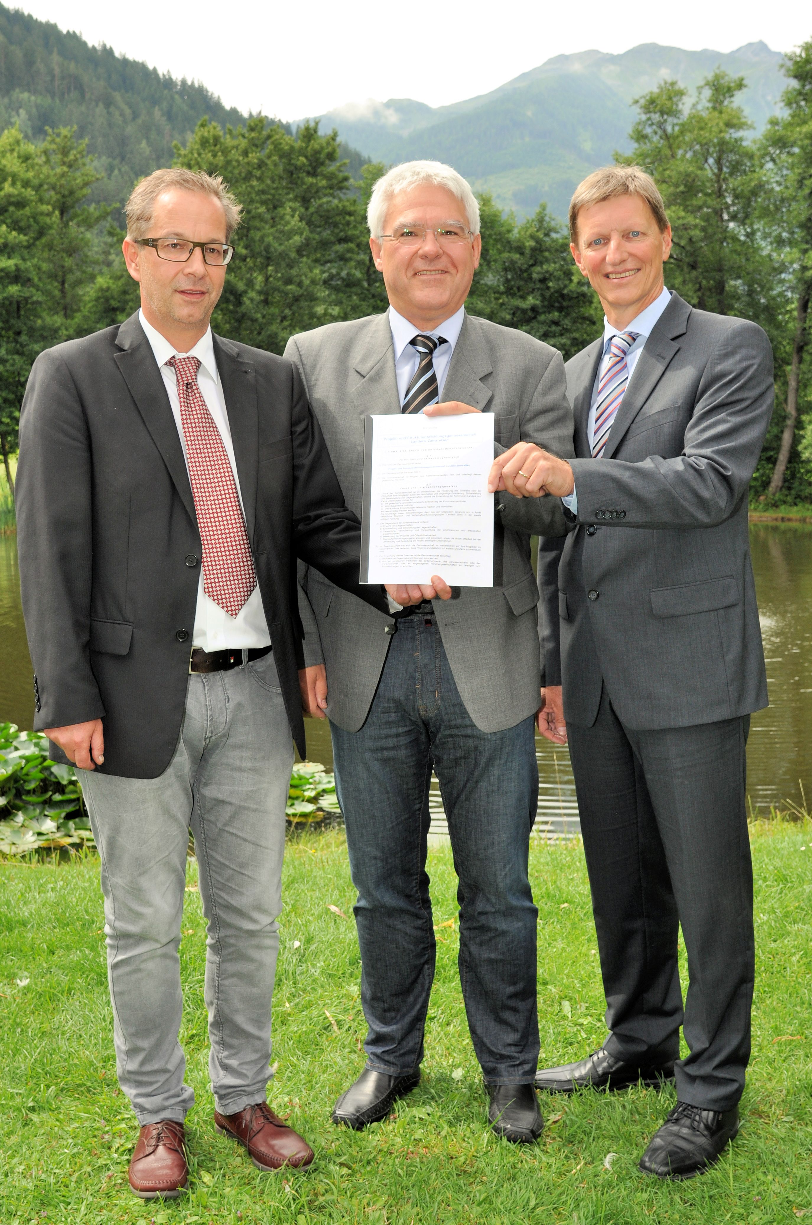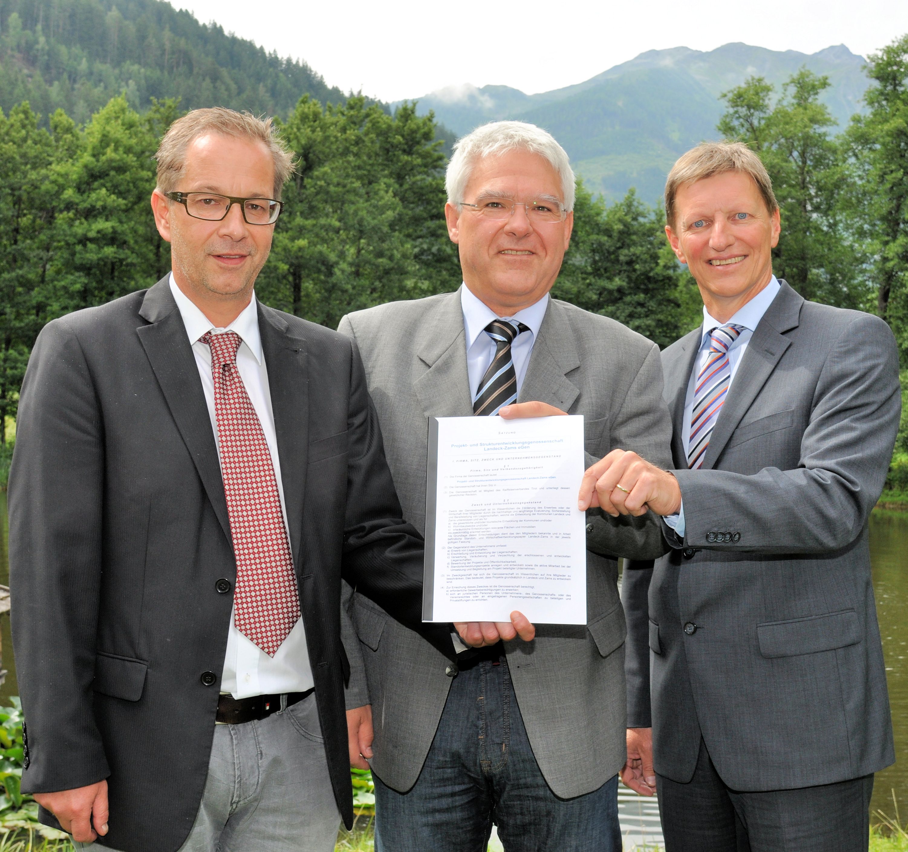 Die Bürgermeister von Landeck und Zams, Wolfgang Jörg und Siegmund Geiger, sowie Wolfgang Hechenberger von der Raiffeisenbank Oberland (v.l.) sehen in der neuen gemeindeübergreifenden Kooperation einen wichtigen Schritt in Richtung fundierter Standortentwicklung.