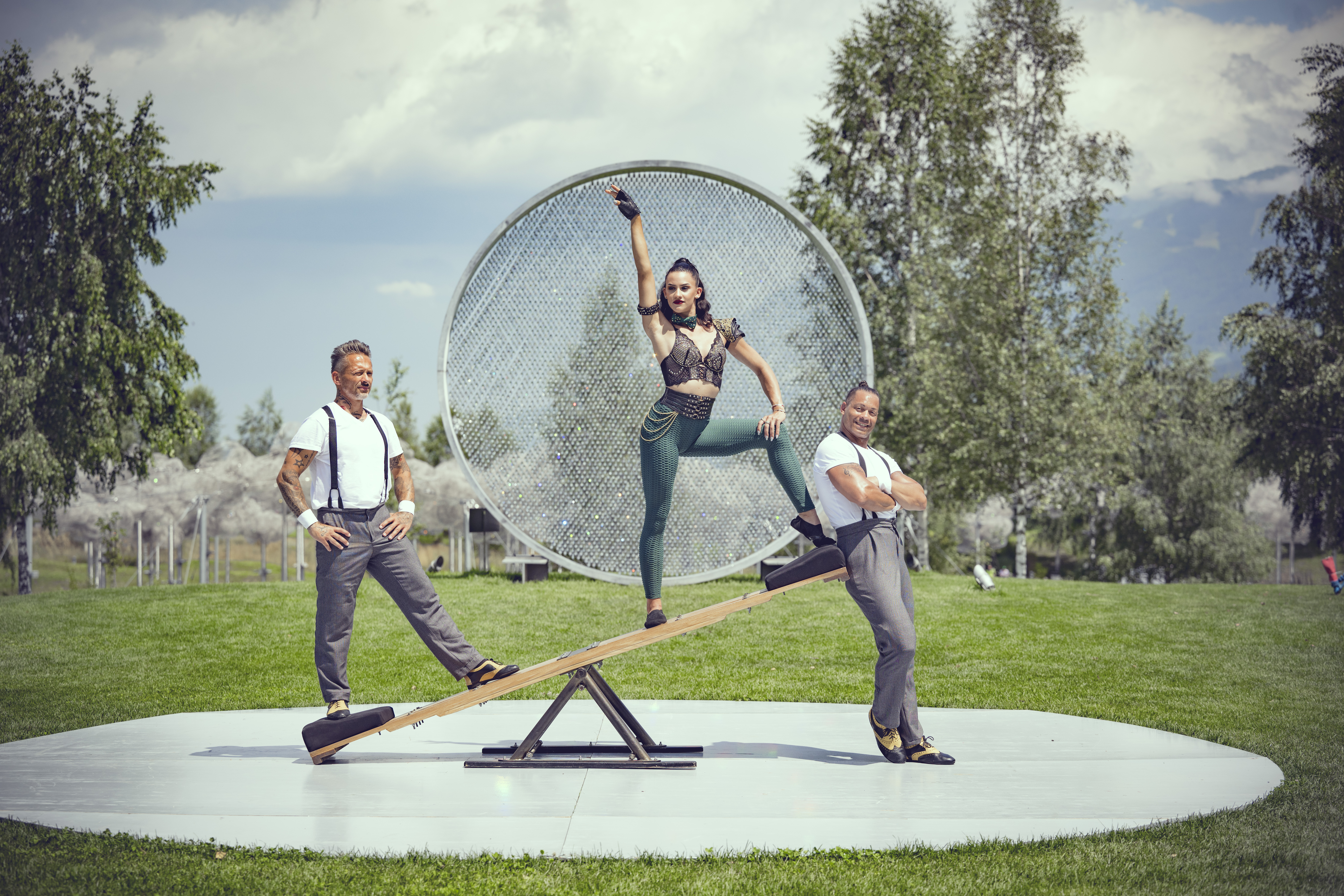 Die drei Ungarn Gabor, Geza und Attila sorgen als Trio Bokafi für ordentlich Wirbel. Mit dem Schleuderbrett katapultieren sich die drei furchtlosen Artisten*innen in schwindelerregende Höhen. Sie springen, fliegen, drehen Schrauben und Salti, um dann zentimetergenau wieder zu landen. Das ist echte Körperbeherrschung und Präzision, die absolutes Vertrauen in die Partner*in erfordert. Bei aller Waghalsigkeit sorgen die drei mit ihrer Lebensfreude und ihrem Charme für humorvolle Momente und geben dem Publikum bei allem Nervenkitzel auch Anlass zum Staunen und Schmunzeln.