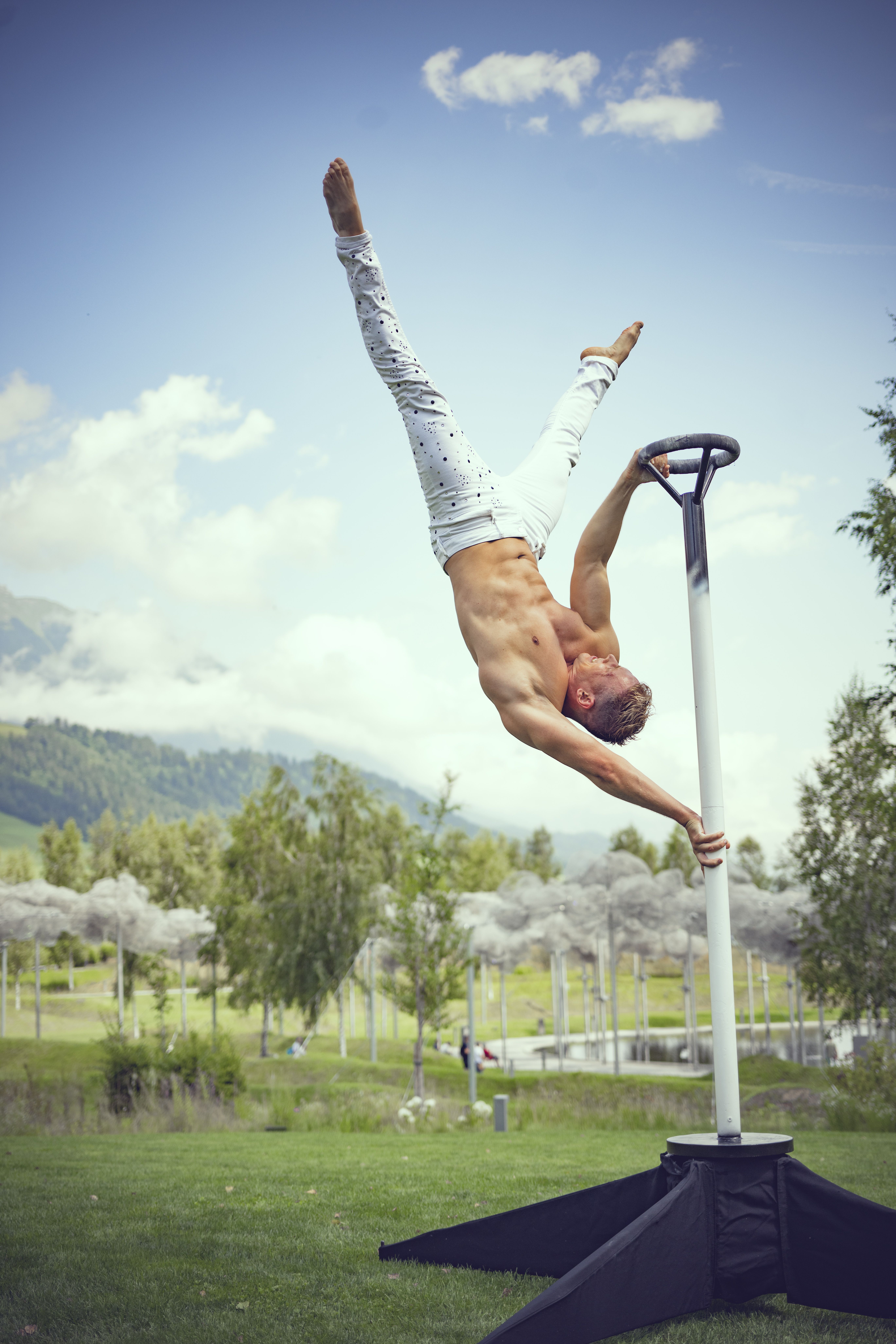 Der aus der Ukraine stammende Akrobat Anton beeindruckt mit seinem durchtrainierten Körper, purer Kraft und Grandezza. Anton tritt an einer senkrechten, freistehenden Pole-Stange auf und zeigt die Königsklasse des Handstands mit absoluter Körperbeherrschung. Im Kontrast dazu steht Antons künstlerische Seite, mit der er in seiner zweiten Darbietung die Gäste verzaubert. Als magischer Maler lässt er in wenigen Minuten ein Gemälde entstehen, das erst in letzter Sekunde zu erkennen ist und dann wie tausende Kristalle im Licht funkelt.