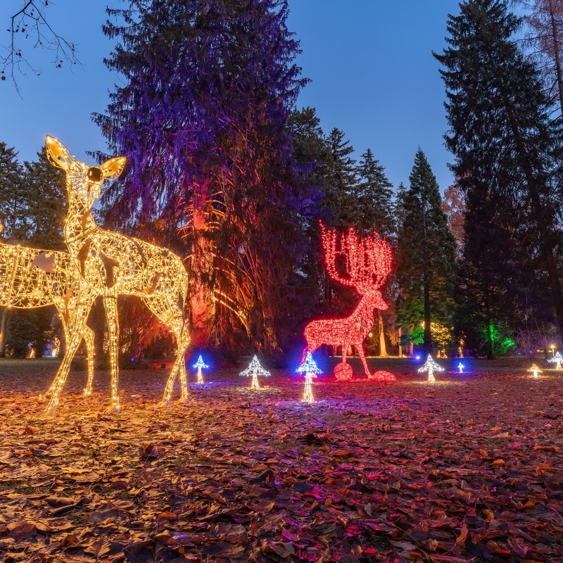Putzige Waldbewohner und majestätisches „Rotwild“ bezaubern Groß und Klein: LUMAGICA Innsbruck ist noch bis zum 31. Januar im Hofgarten zu sehen.