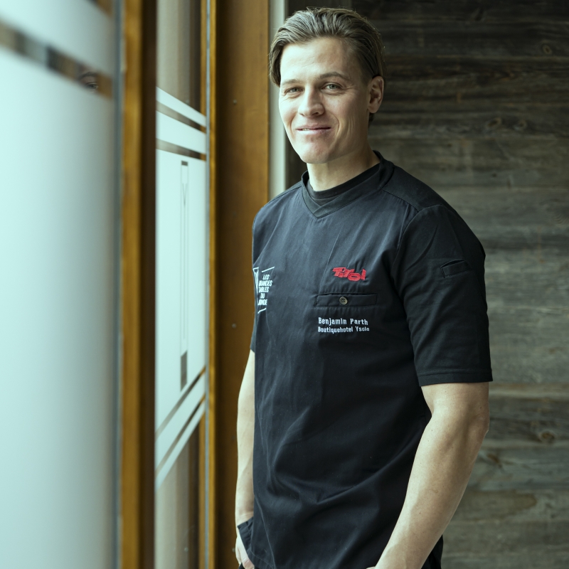Mit seinem Gourmetrestaurant Stüva im familieneigenen Boutiquehotel YSCLA in Ischgl erzielt Benjamin Parth seit Jahren nationale und internationale Top-Platzierungen. Er lernte sein Handwerk bei den besten Köchen Europas: Nach Lehrjahren bei Heinz Winkler in Aschau im Chiemgau (DE) führte die berufliche Laufbahn den jungen Tiroler unter anderem nach Wolfsburg (DE), wo er bei Sven Elverfeld im Restaurant Aqua tätig war. Weitere markante Stationen seiner Karriere waren die L’Auberge de l’Ill von Marc Haeberlin in Illhaeusern (FR) und das Can Fabes in Sant Celoni (ES), wo er von Santi Santamaria lernte. Zurück in der Heimat ist er seit 2008 im Hotel seiner Familie Küchenchef des Gourmetrestaurant Stüva und bietet seinen Gästen ein exquisites Fine-Dining Erlebnis.