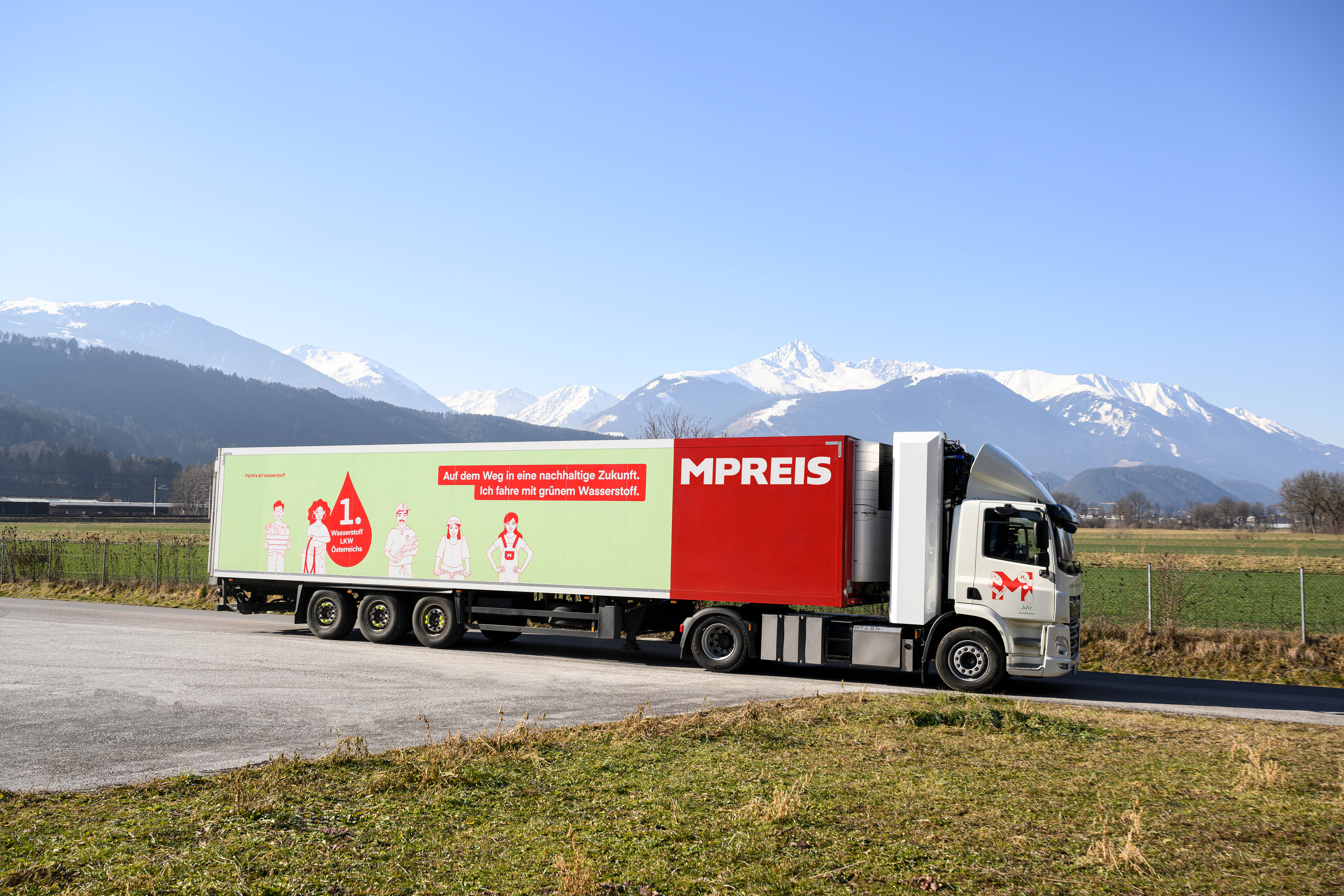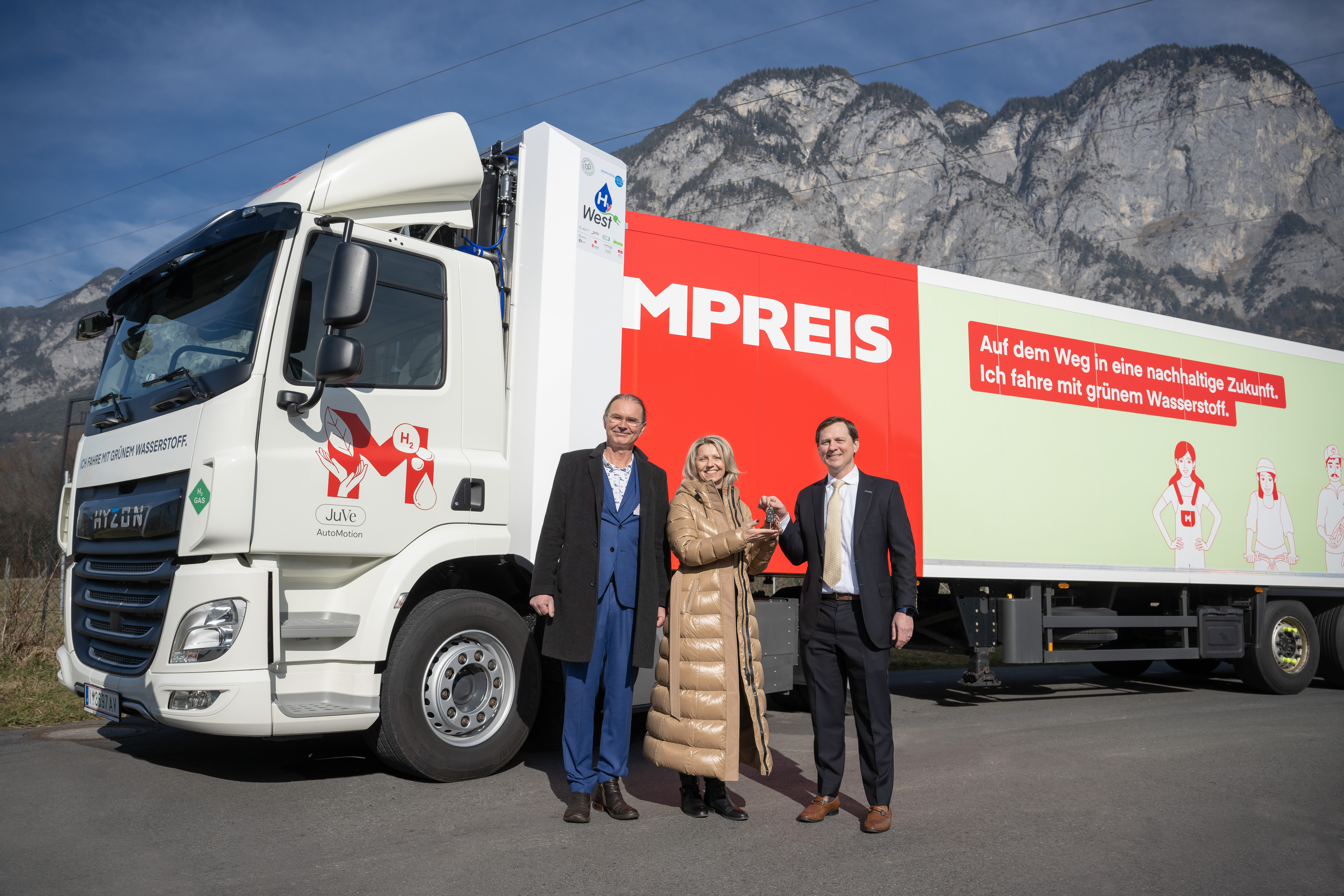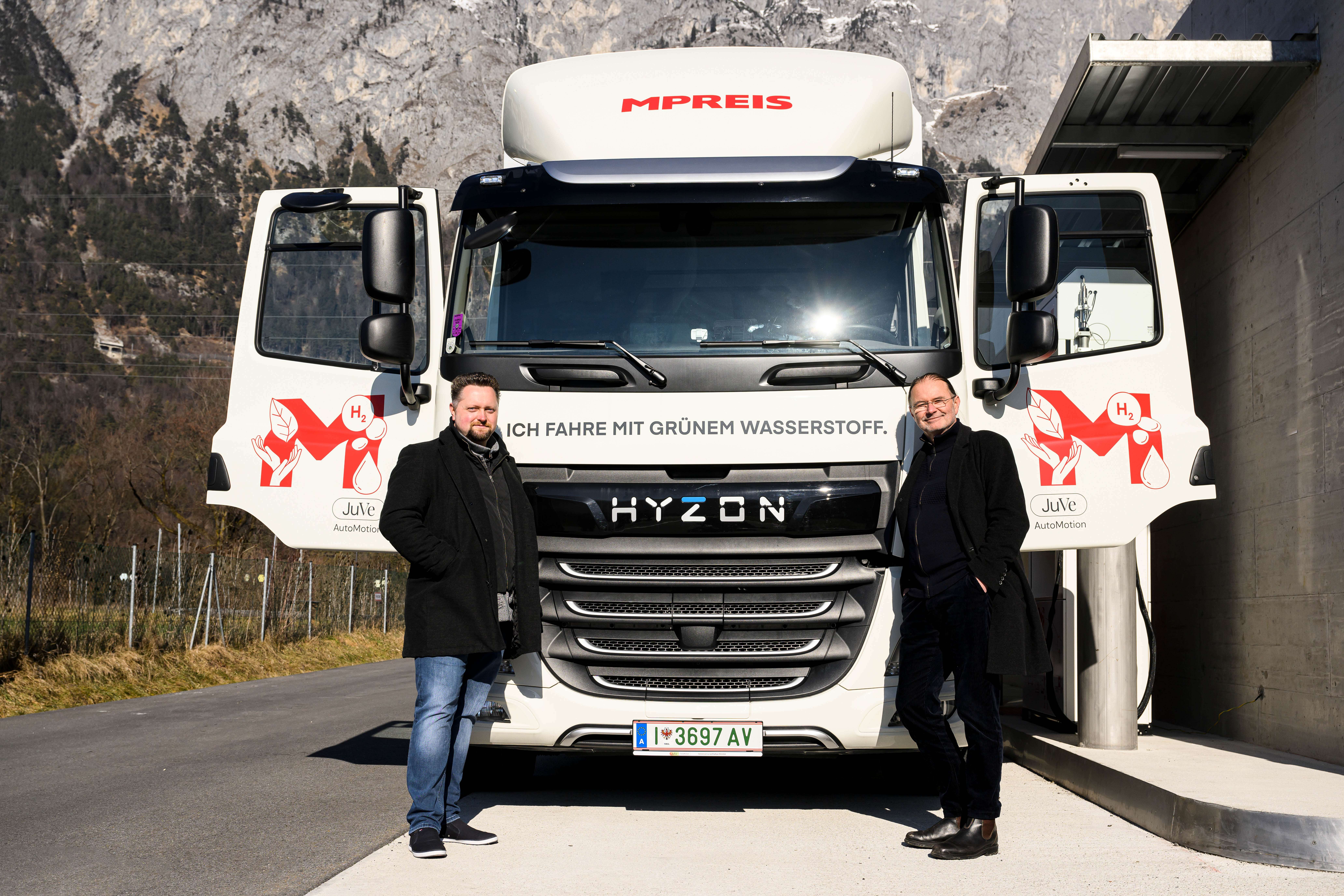 Den ersten MPREIS Wasserstoff-LKW hat der amerikanische Fahrzeughersteller Hyzon Motors, der die Fahrzeuge für den europäischen Markt in den Niederlanden entwickelt und produziert, hergestellt. Das Fahrzeug vom Typ „HYZON Hymax 250“ wurde an die Bedürfnisse von MPREIS angepasst. Das Tiroler Start-up „JuVe AutoMotion“ mit Sitz in Innsbruck, das in den Bereichen Handel, Betrieb und Wartung von wasserstoffbetriebenen Brennstoffzellen-Nutzfahrzeugen agiert, nimmt die wasserstoffbetriebenen LKW für MPREIS in Betrieb. Künftig wird das 2021 gegründete Unternehmen als ein zentraler Importeur von Hyzon Fahrzeugen in Österreich und als Full-Service-Anbieter für Brennstoffzellen-LKW den gesamten österreichischen Markt bedienen.
