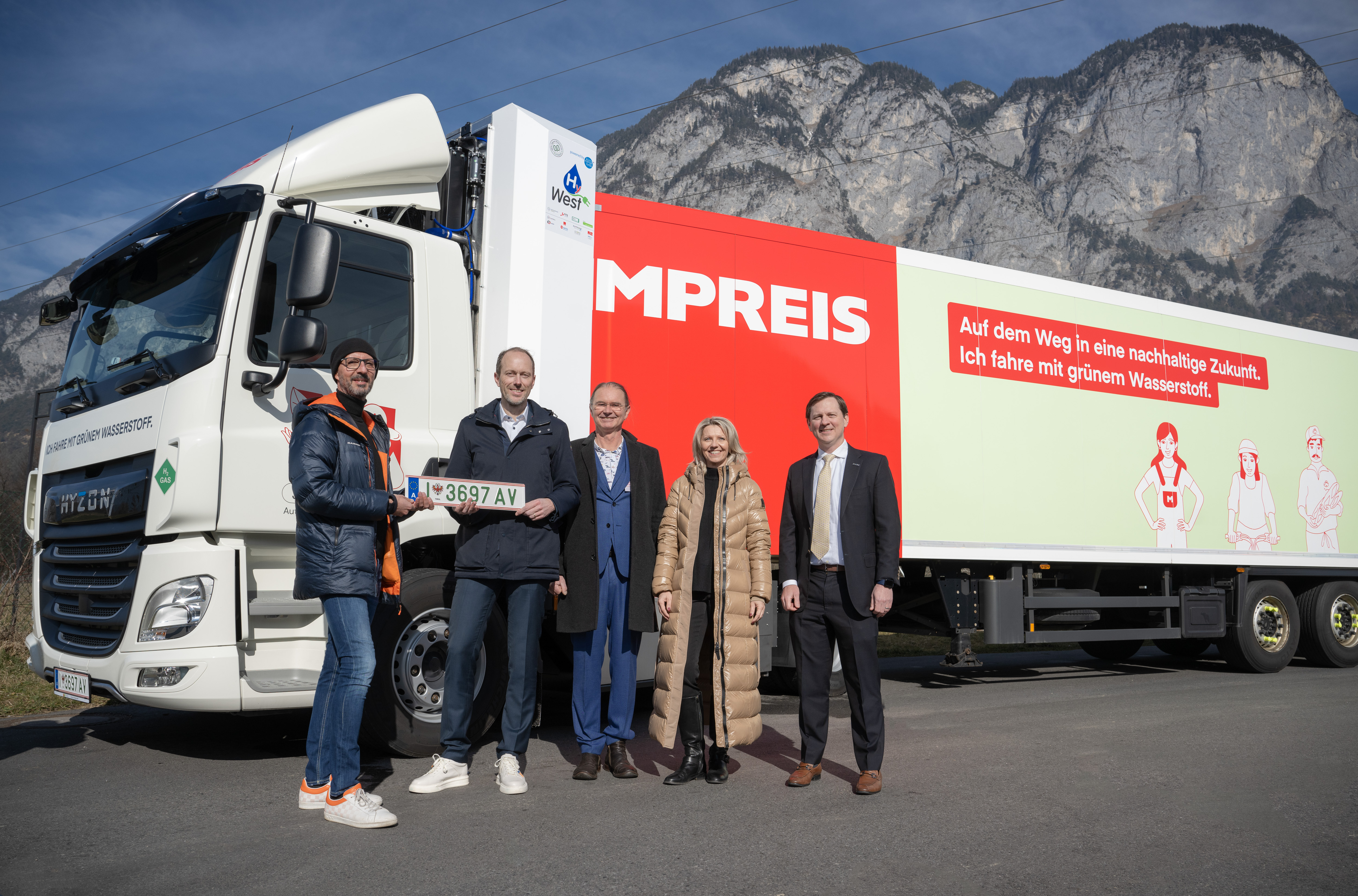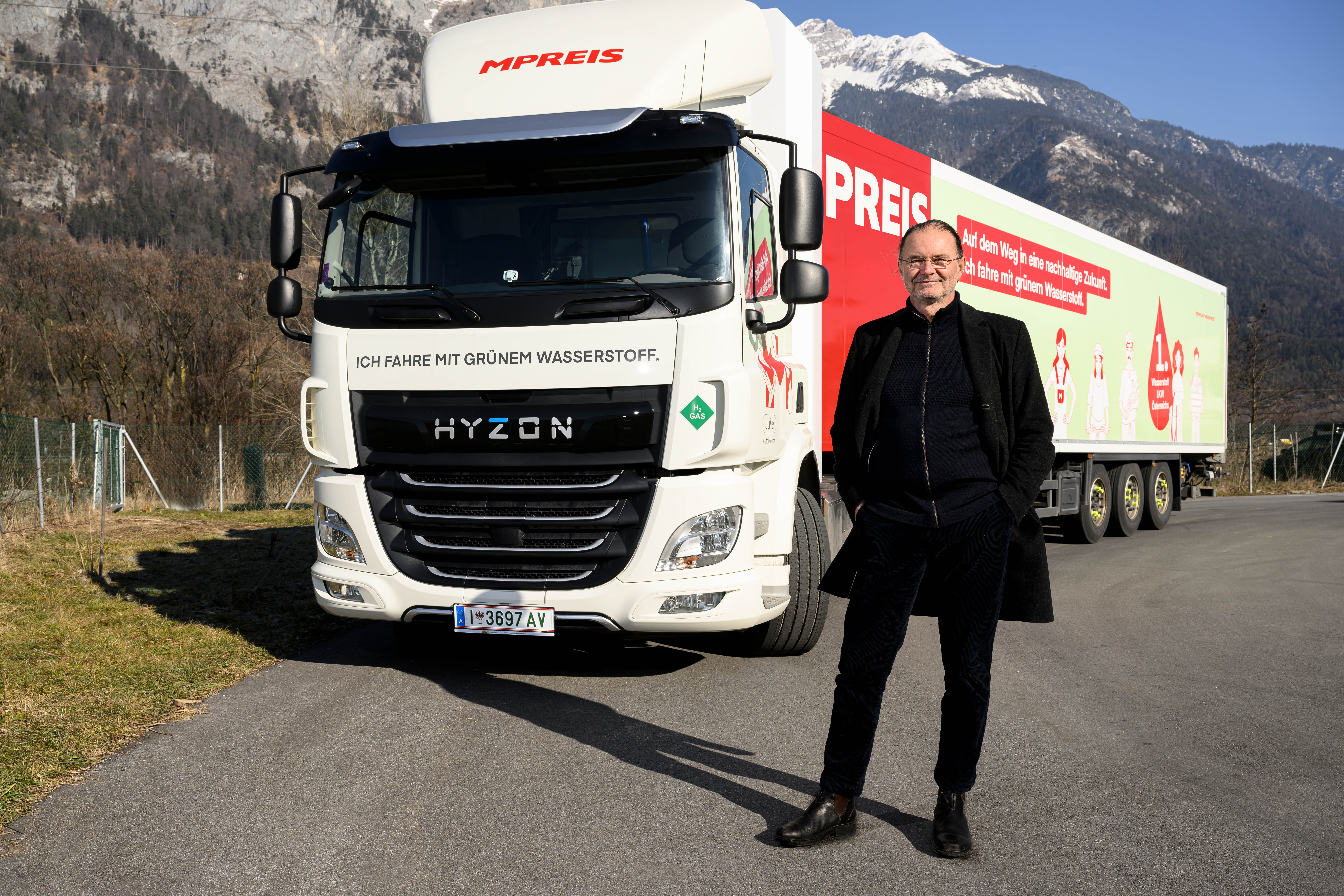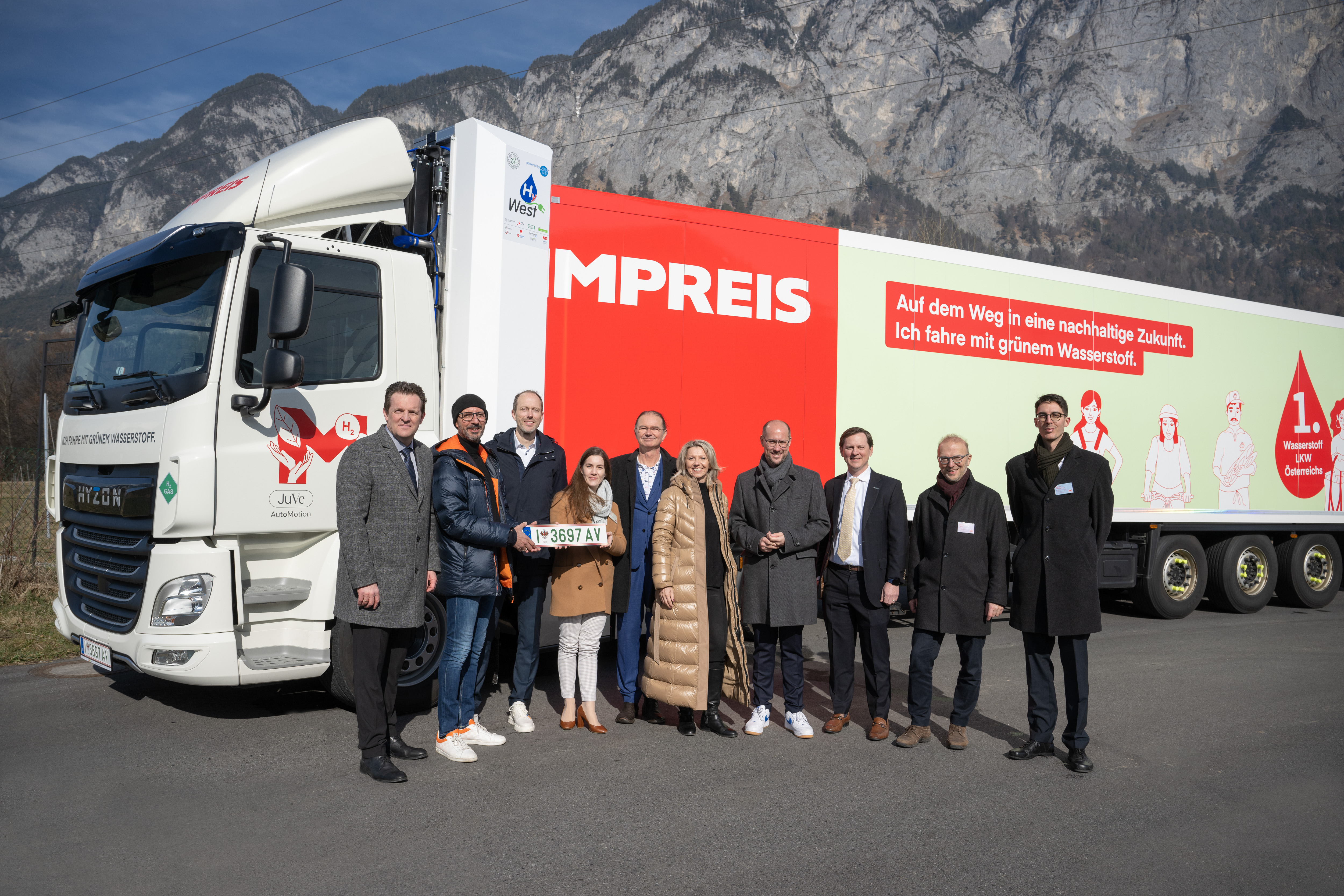 Den ersten MPREIS Wasserstoff-LKW hat der amerikanische Fahrzeughersteller Hyzon Motors, der die Fahrzeuge für den europäischen Markt in den Niederlanden entwickelt und produziert, hergestellt. Das Fahrzeug vom Typ „HYZON Hymax 250“ wurde an die Bedürfnisse von MPREIS angepasst. Das Tiroler Start-up „JuVe AutoMotion“ mit Sitz in Innsbruck, das in den Bereichen Handel, Betrieb und Wartung von wasserstoffbetriebenen Brennstoffzellen-Nutzfahrzeugen agiert, nimmt die wasserstoffbetriebenen LKW für MPREIS in Betrieb. Künftig wird das 2021 gegründete Unternehmen als ein zentraler Importeur von Hyzon Fahrzeugen in Österreich und als Full-Service-Anbieter für Brennstoffzellen-LKW den gesamten österreichischen Markt bedienen.