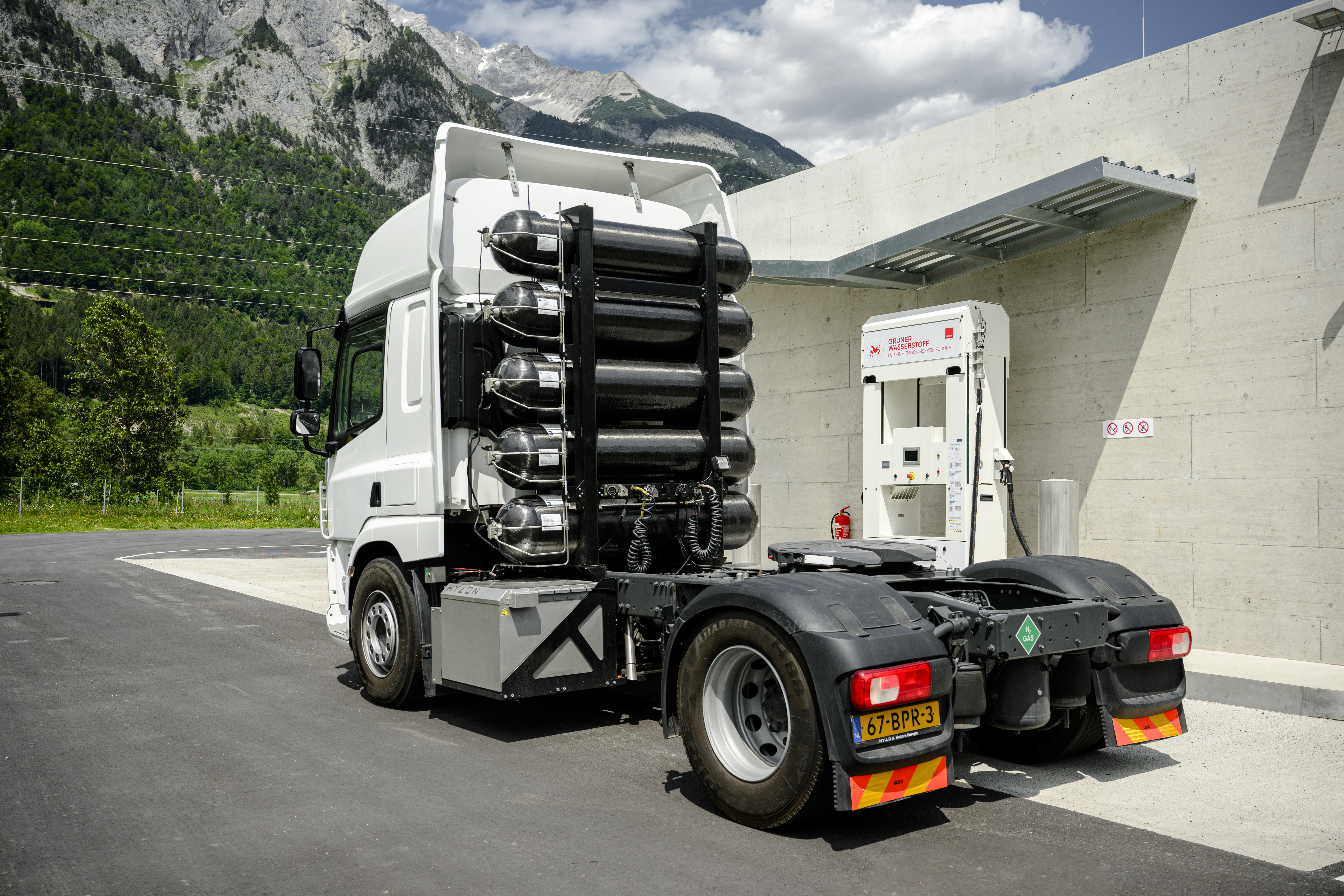 Die Tankstelleninfrastruktur in Völs steht bereits. Um diese unter Realbedingungen zu testen, war in den letzten Wochen ein Test-Lkw der Firma Hyzon in Tirol im Einsatz. „Mit diesem Testfahrzeug konnten wir unsere Fahrer auf die neue Technik einschulen und die notwendigen behördlichen Abnahmen sowie zahlreiche Testbetankungen erfolgreich durchführen“, so Perwög.
