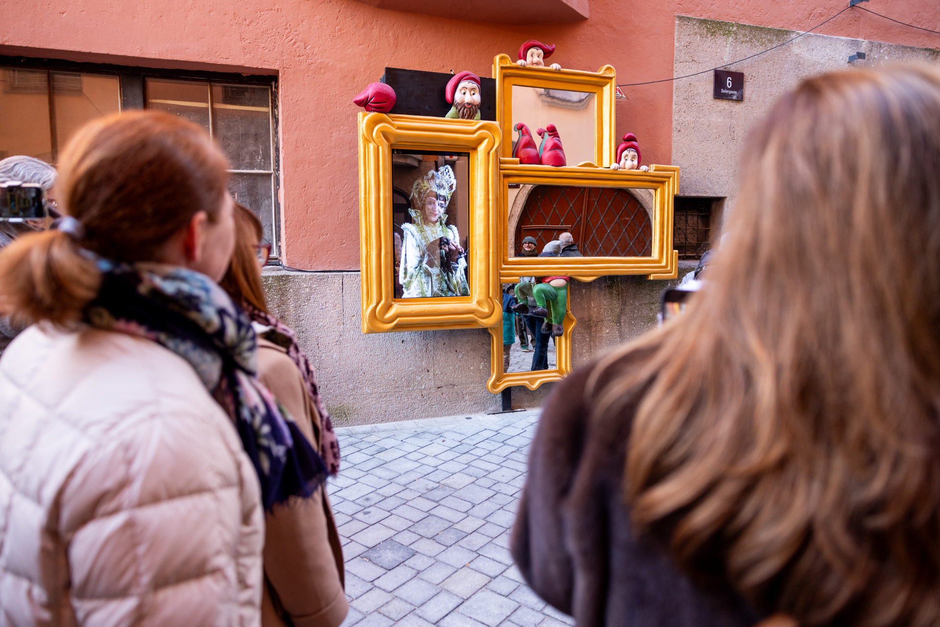 Die Figuren sind bewusst auf drei Ebenen gesetzt – am Boden, über den Köpfen und an den Fassaden. So entstehen Blickachsen, Entdeckungsmomente und klare Wegeführungen durch die Kiebach- und Seilergasse. Aus ikonischen Szenen – von Aschenputtel über Rotkäppchen bis zu Alice im Wunderland – ergibt sich ein schlüssiges Stadterlebnis, das die Nebengassen zum Bühnenraum macht. „Die neuen Märchenbilder schaffen Momente, die man teilt – und sie lenken die Wege bewusst in die Seitengassen. Das entzerrt Besucherströme, erhöht die Aufenthaltsdauer, steigert die Frequenz und stärkt den Handelsstandort in der Altstadt. Kostenfrei erlebbar und qualitativ hochwertig – so begeistern wir Familien und schaffen gleichzeitig Wertschöpfung für die Innsbrucker Betriebe“, sagt Peter Paul Mölk, Obmann von Innsbruck Tourismus.