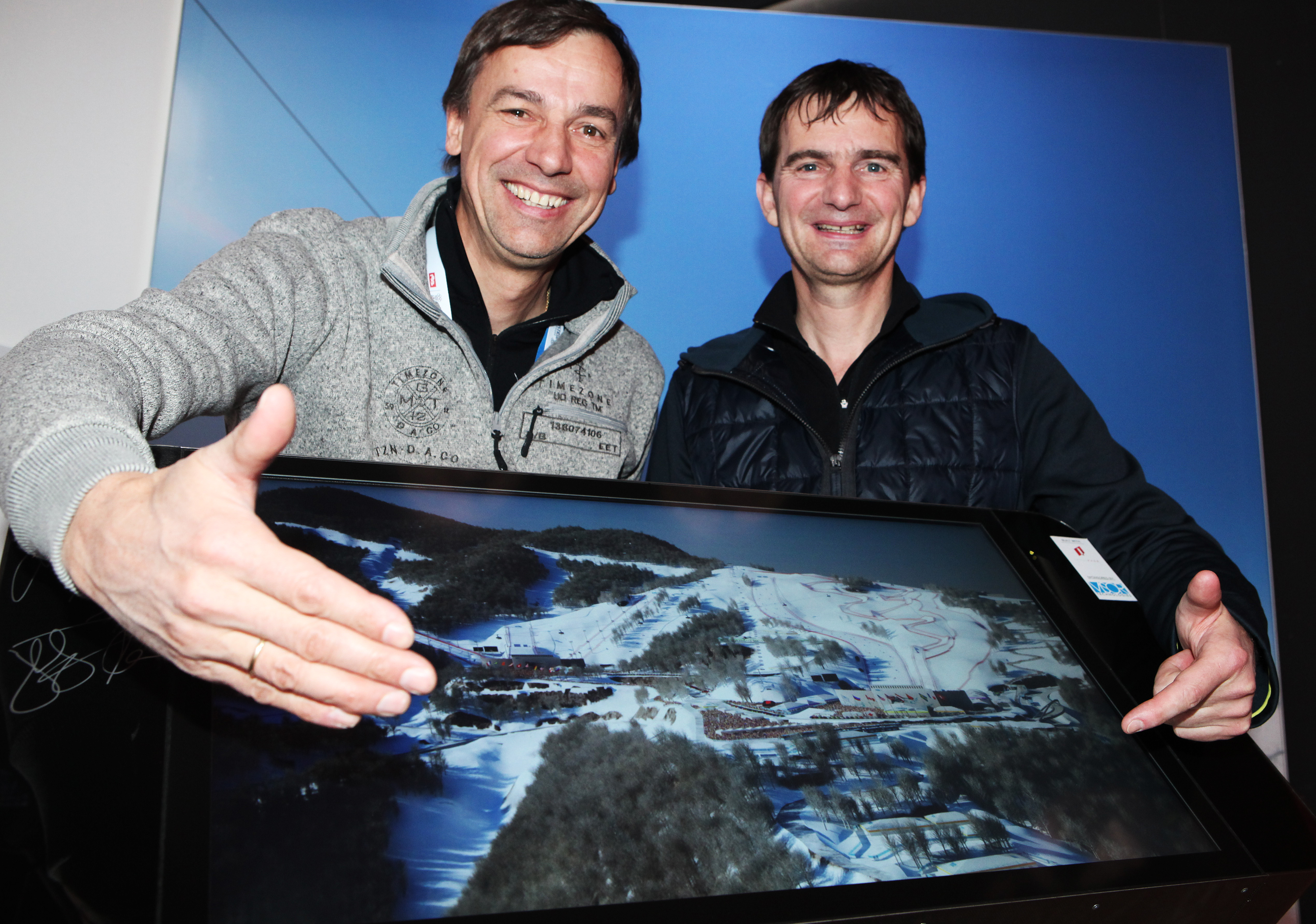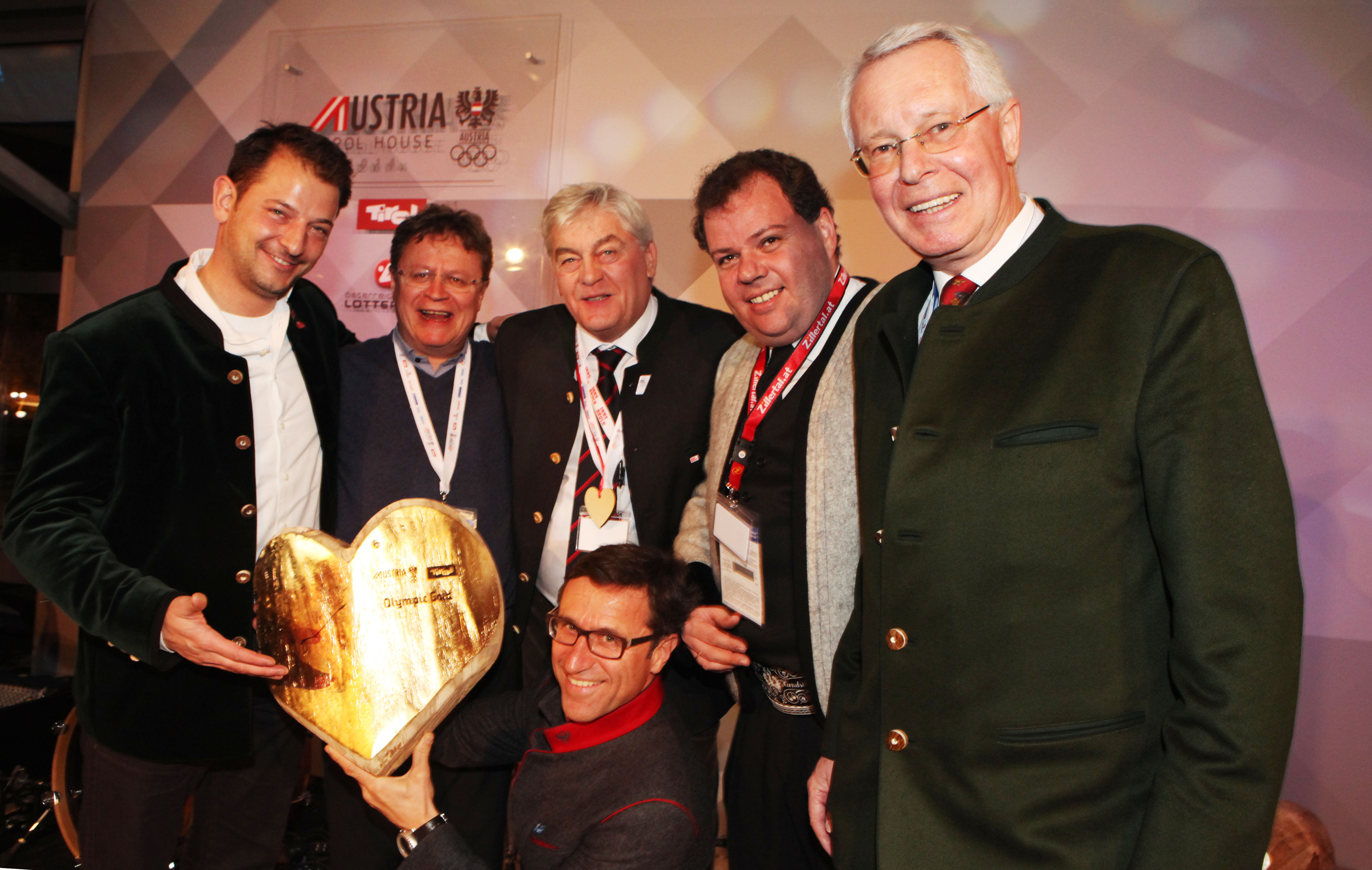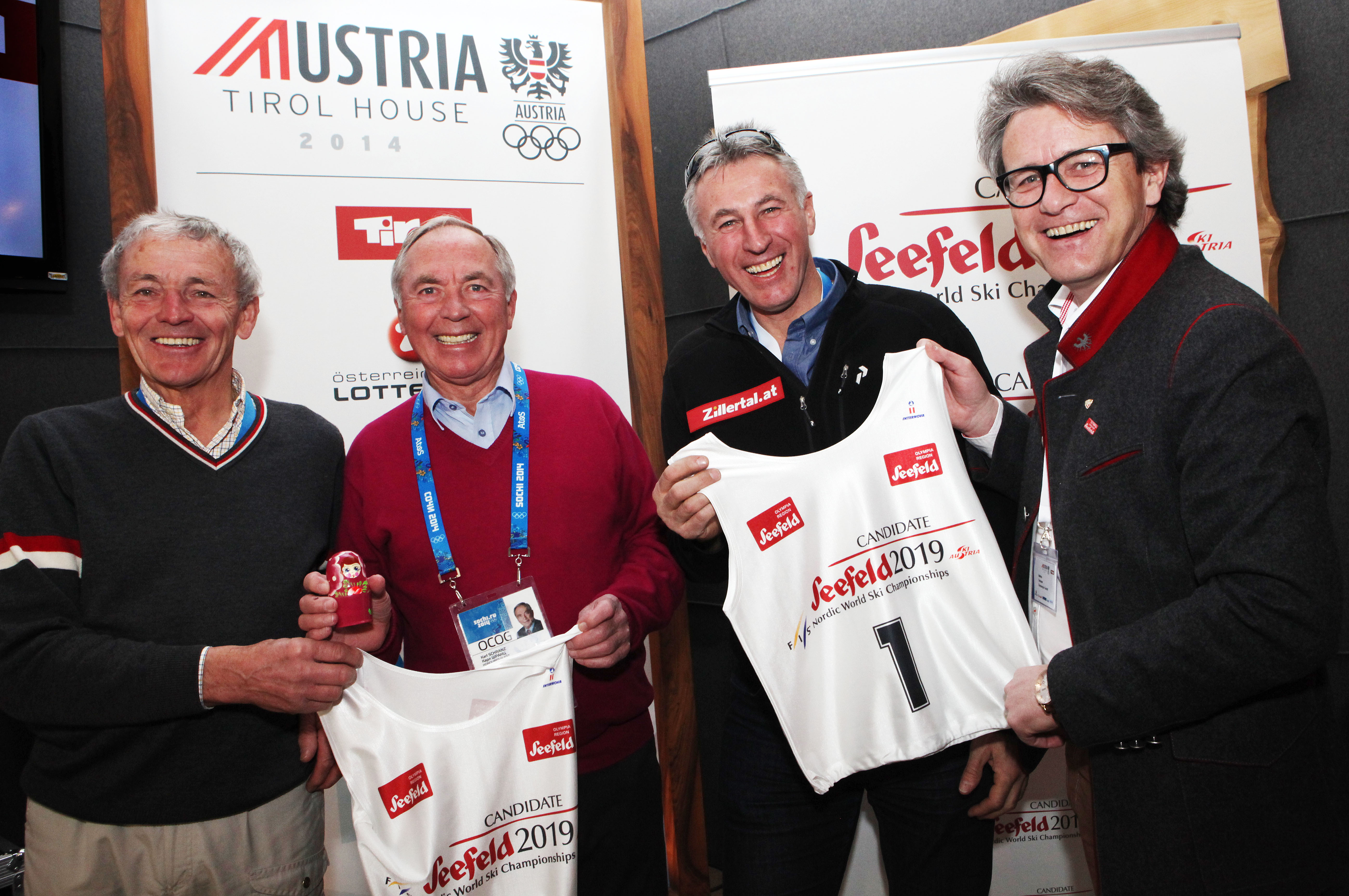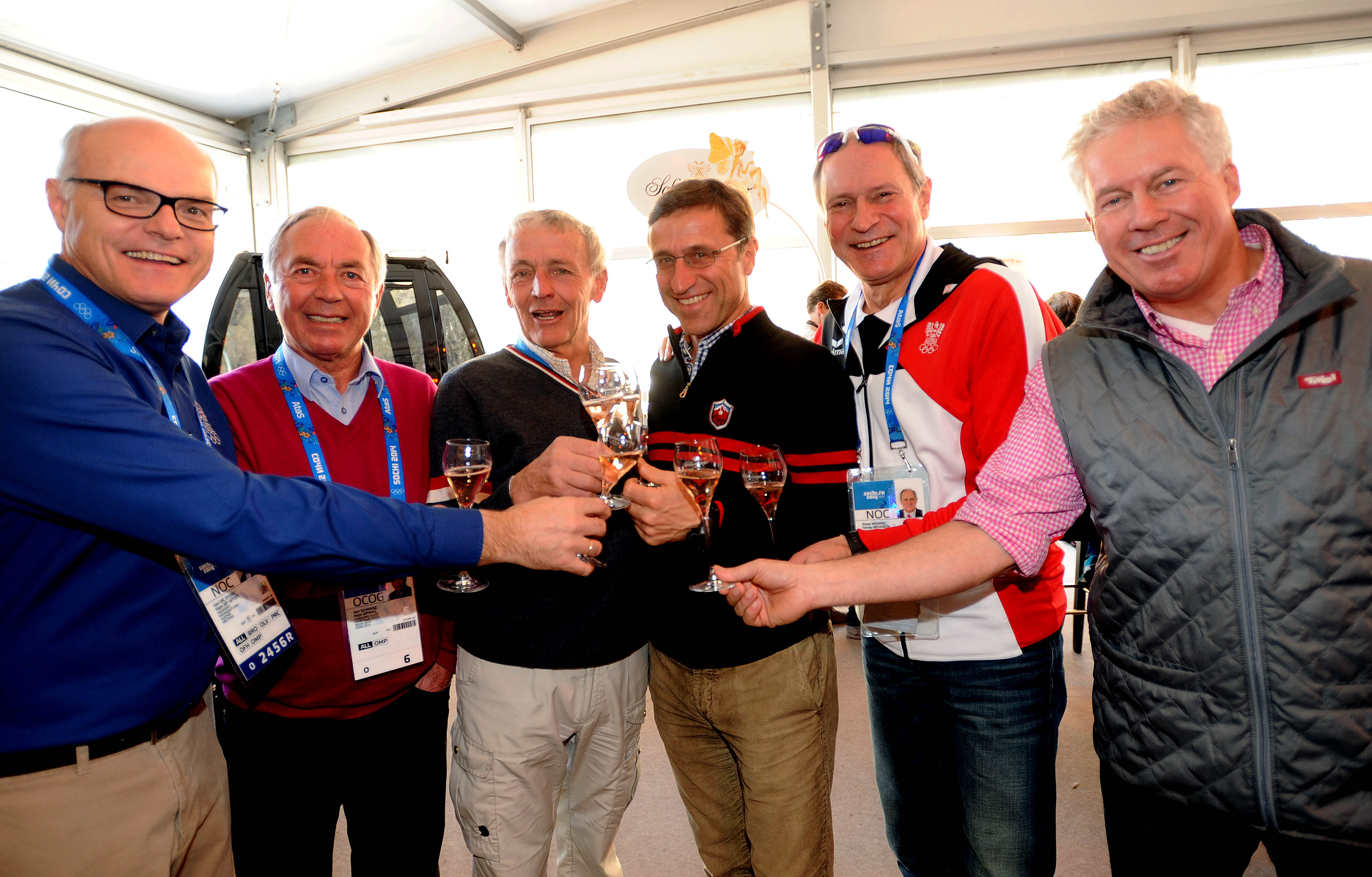 Das deutsche Team (v.li.) Severin Freund, Andreas Wank, Andreas Wellinger, Marinus Kraus und Richard Freitag erhielt einen Urlaubsgutschein für die Olympiaregion Seefeld und verbindet dies gleich mit einem Trainingslager, zumal Seefeld sich für die Austragung der Nordischen Ski-Weltmeisterschaft 2019 bewirbt.