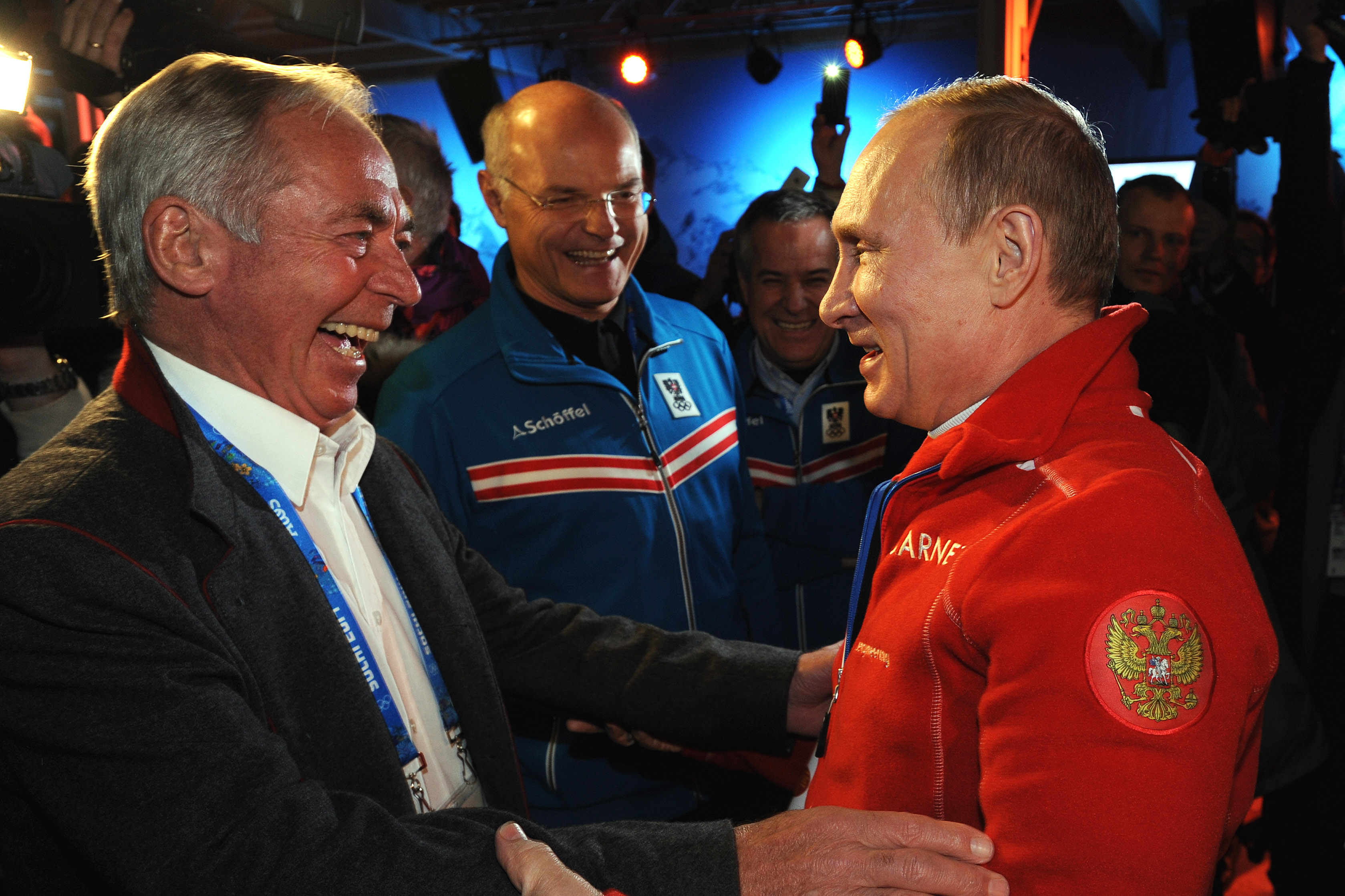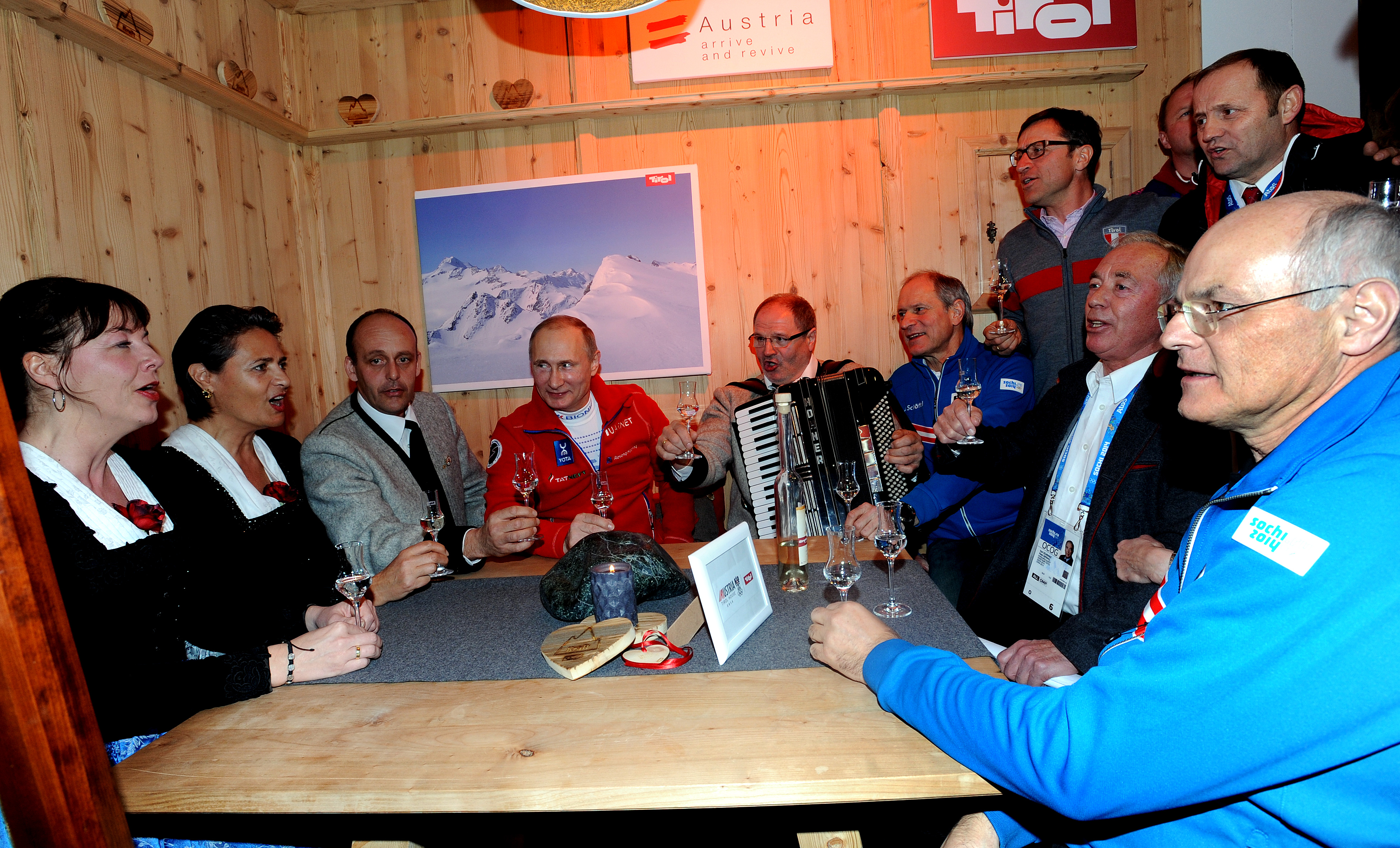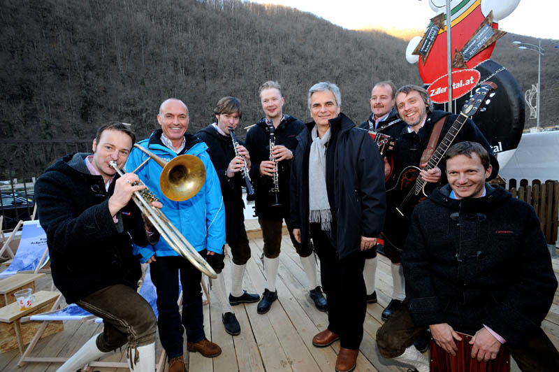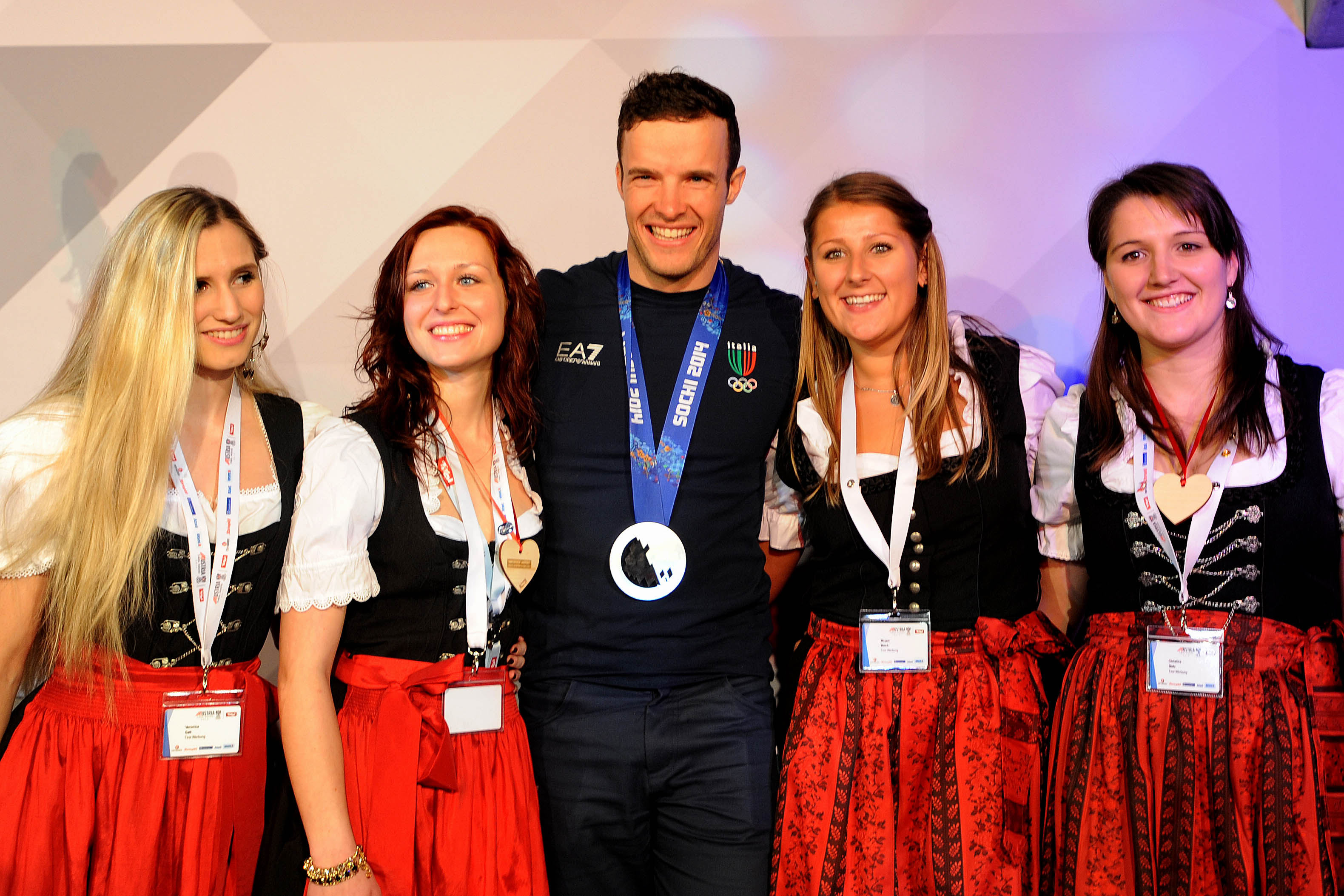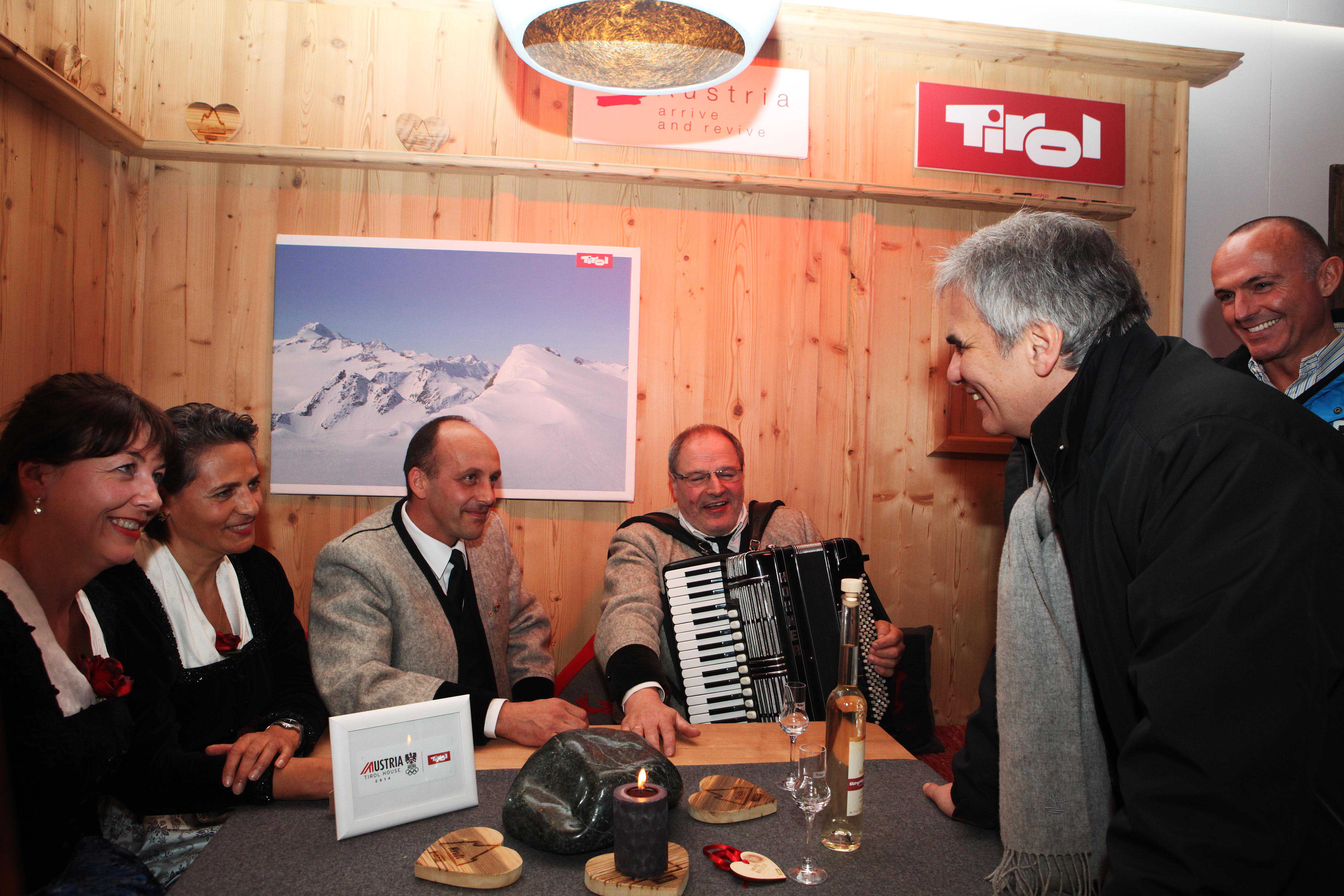 Das deutsche Team (v.li.) Severin Freund, Andreas Wank, Andreas Wellinger, Marinus Kraus und Richard Freitag erhielt einen Urlaubsgutschein für die Olympiaregion Seefeld und verbindet dies gleich mit einem Trainingslager, zumal Seefeld sich für die Austragung der Nordischen Ski-Weltmeisterschaft 2019 bewirbt.