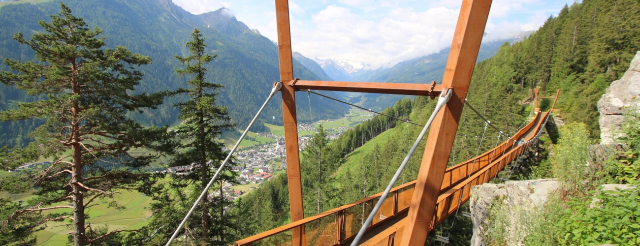 110 Meter lange Hängebrücke auf der Stubaier „Sunnenseit’n“ und Fußgängerzone in Neustift eingeweiht