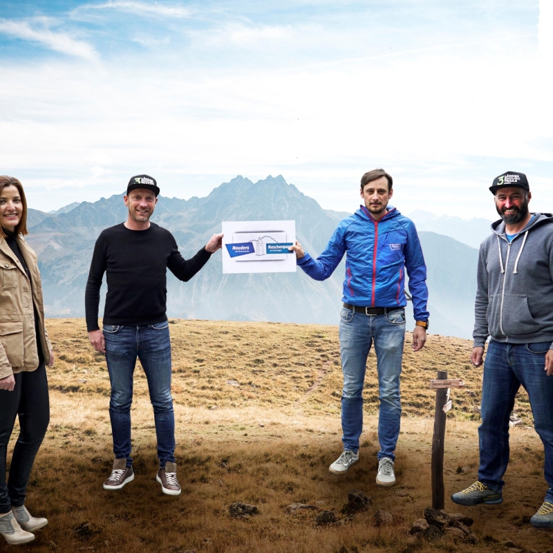 Die Verantwortlichen der grenzüberschreitenden Zusammenarbeit EWIV (v.l.n.r.): Deborah Zanzotti (Präsidentin der Ferienregion Reschenpass, Gesellschafterin EWIV Reschenpass), Gerald Burger (Geschäftsführung TV Reschenpass und EWIV Nauders-Reschenpass) und Manuel Baldauf (Geschäftsführer TVB Tiroler Oberland und EWIV Nauders-Reschenpass), Helmut Wolf (Vorstand Tourismusverband Tiroler Oberland, Gesellschafter EWIV).