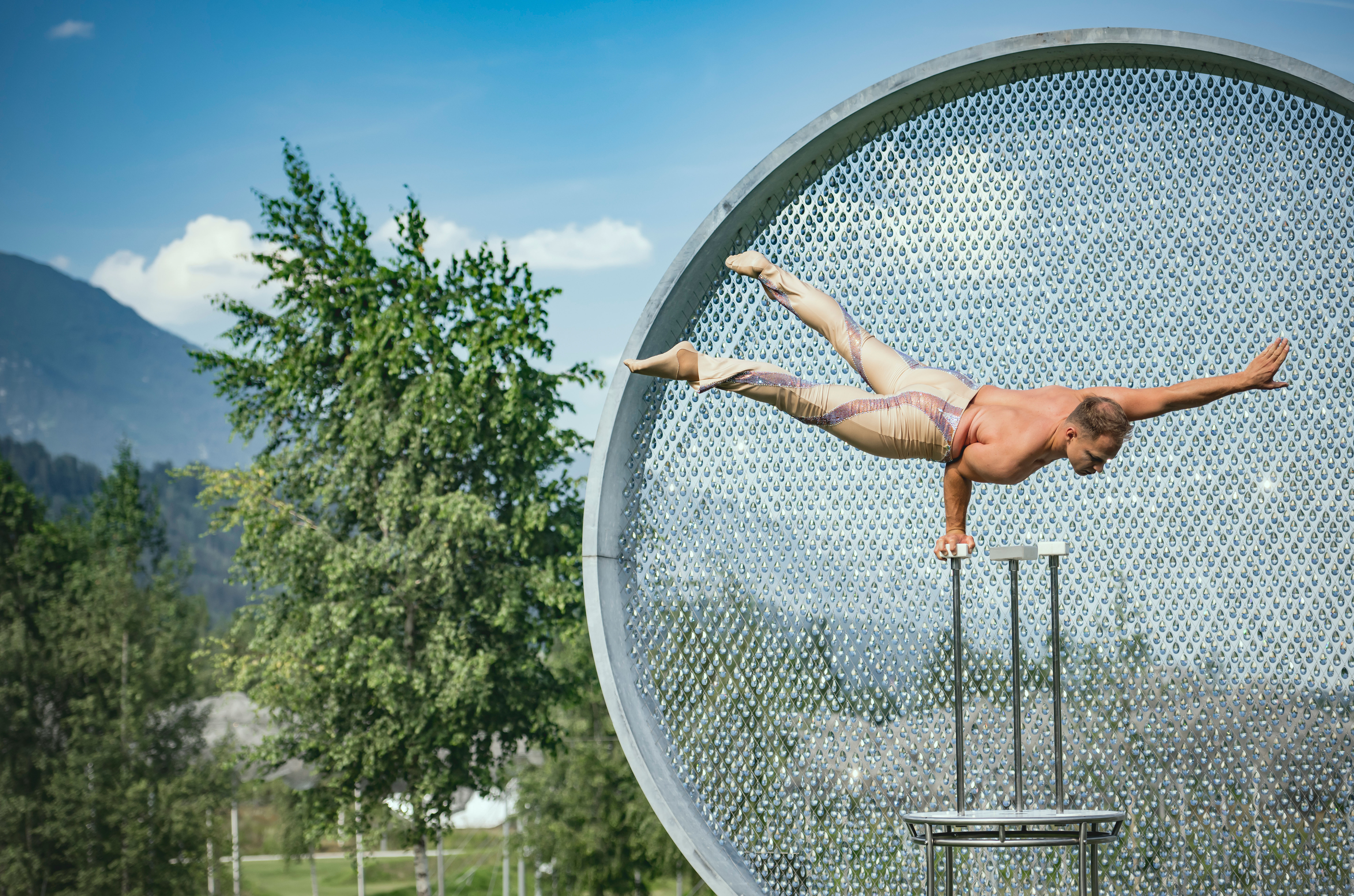 The Maestro: Wer das Gefühl hat, die Welt steht Kopf, dem hilft manchmal ein Perspektivenwechsel. Das zeigt der Maestro mit eindrucksvoller Artistik auf höchstem Niveau. Der Handstand-Akrobat vereint Kraft und Leichtigkeit in seiner Performance.