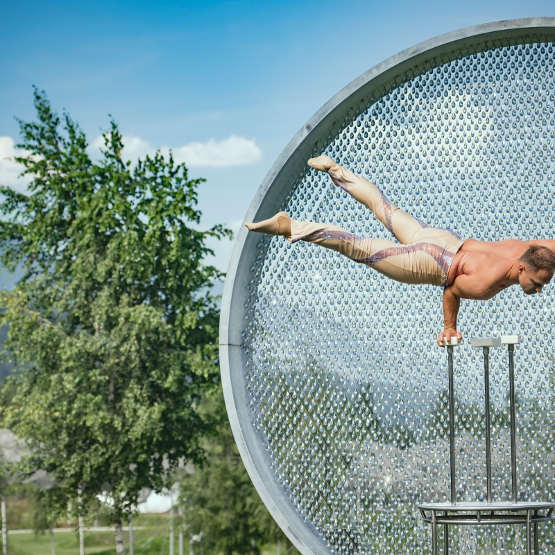 The Maestro: Der Handstand-Akrobat aus Österreich vereint Kraft mit Leichtigkeit in den Swarovski Kristallwelten.