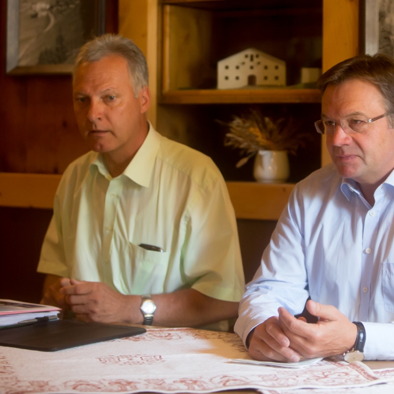 Karl Popeller (li.), Vorstandsdirektor der Felbertauernstraße AG, und Tirols Landeshauptmann Günther Platter eröffneten die nach nur 1,5 Monaten Bauzeit fertiggestellte Umfahrung auf der Felbertauernstraße.
