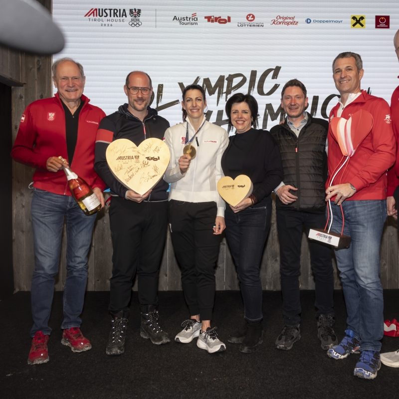 Gold für Tirol: Janine Flock feierte ihre Goldmedaille gebührend im Austria Tirol House.
