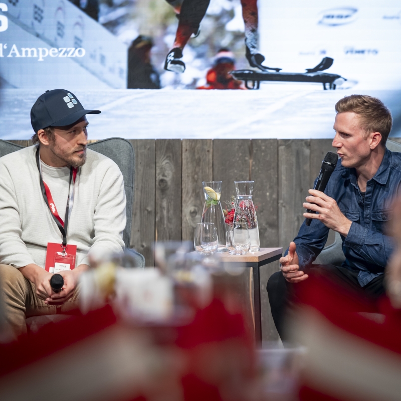 Ein besonderer Programmpunkt am Standortagentur-Tirol-Tag war der Talk zum Thema Athlet:innen‑Sponsoring, bei dem der Tiroler Kletterstar Jakob Schubert gemeinsam mit Johannes Erhart (Agentur CASABLANCA, links) Einblicke in die Praxis gab.