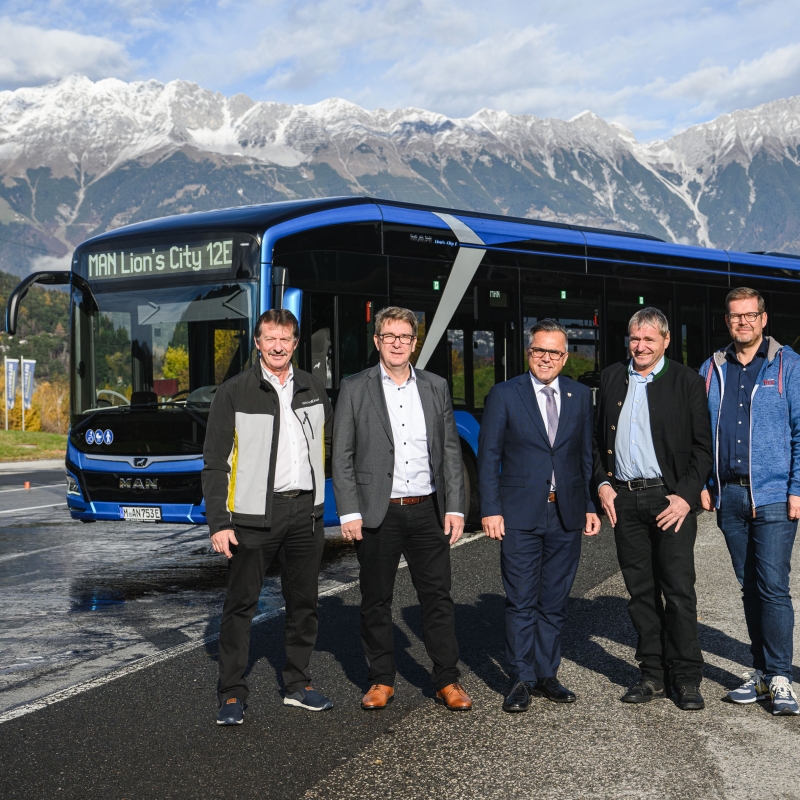(v.li.) Heinrich Degenhart (Head of MAN Bus ProfiDrive) Lars Heydecke (Head of Sales Bus MAN), Franz Sailer (WKO Obmann der Fachgruppe Autobus- Luftfahrt-, und Schifffahrtunternehmungen Tirol), Andreas Kröll (GF Christophorus Reisen), Markus Tipotsch (Obmann TVB Tux – Finkenberg), Willi Seifert (GF Hochgebirgsnaturpark Zillertaler Alpen)