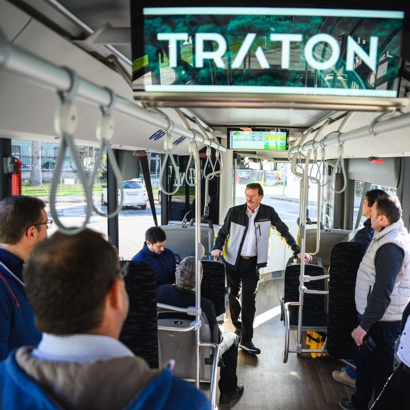Heinrich Degenhart (Schulungsleiter von MAN ProfiDrive), spricht über die technischen Details der Busse.