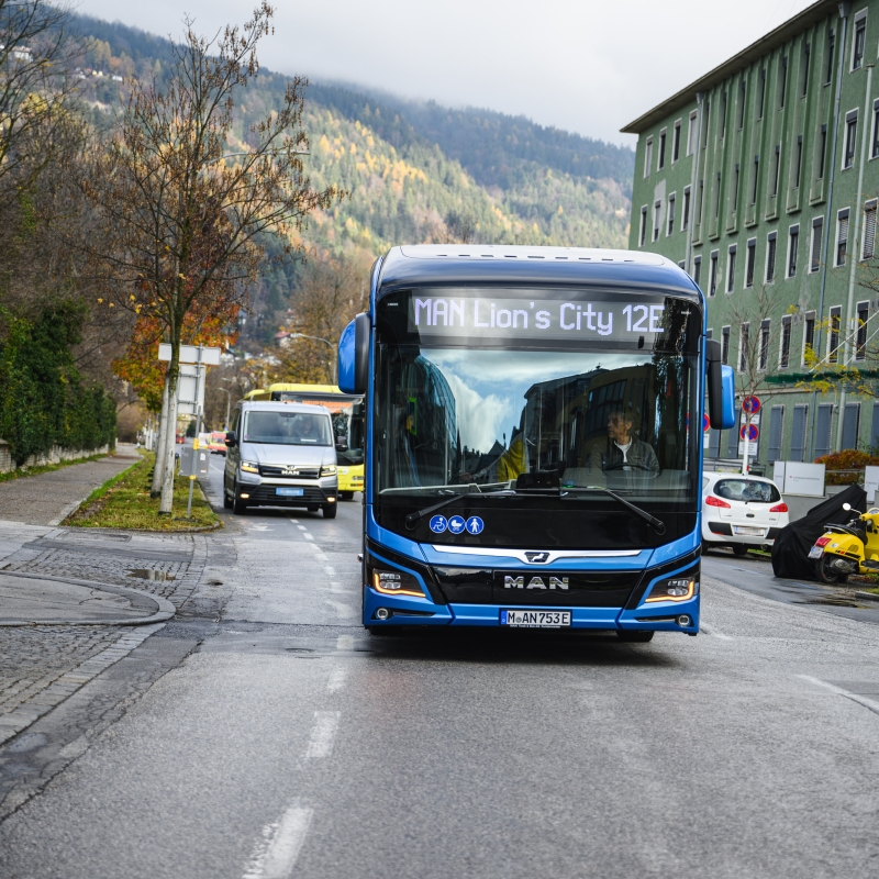 Der E-Bus vom MAN unterwegs auf Tirols Straßen.