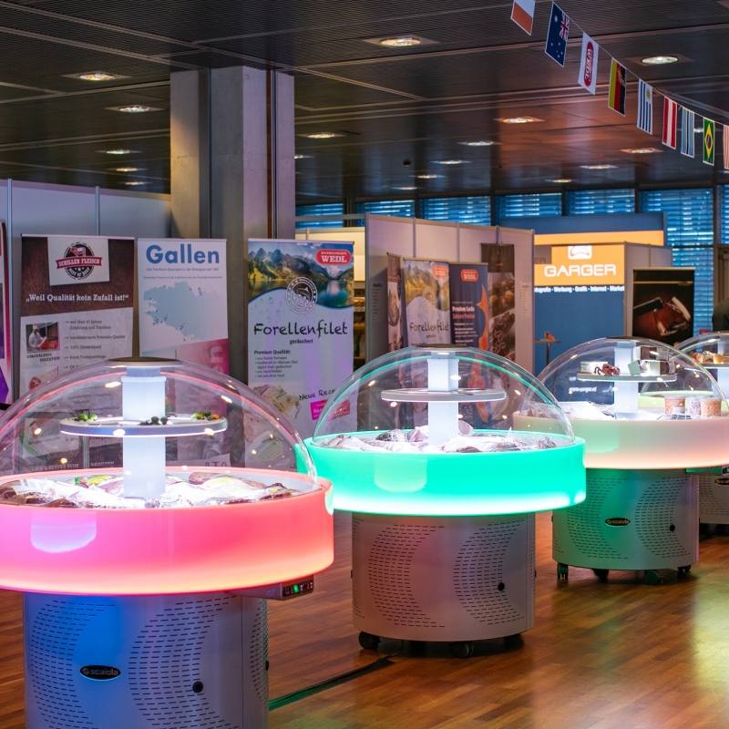 Die Industriepartner von Wedl wissen die Möglichkeit zum direkten Kundenkontakt zu schätzen; entsprechend aufwändig und liebevoll gestalten sie ihre Kojen und Stände.