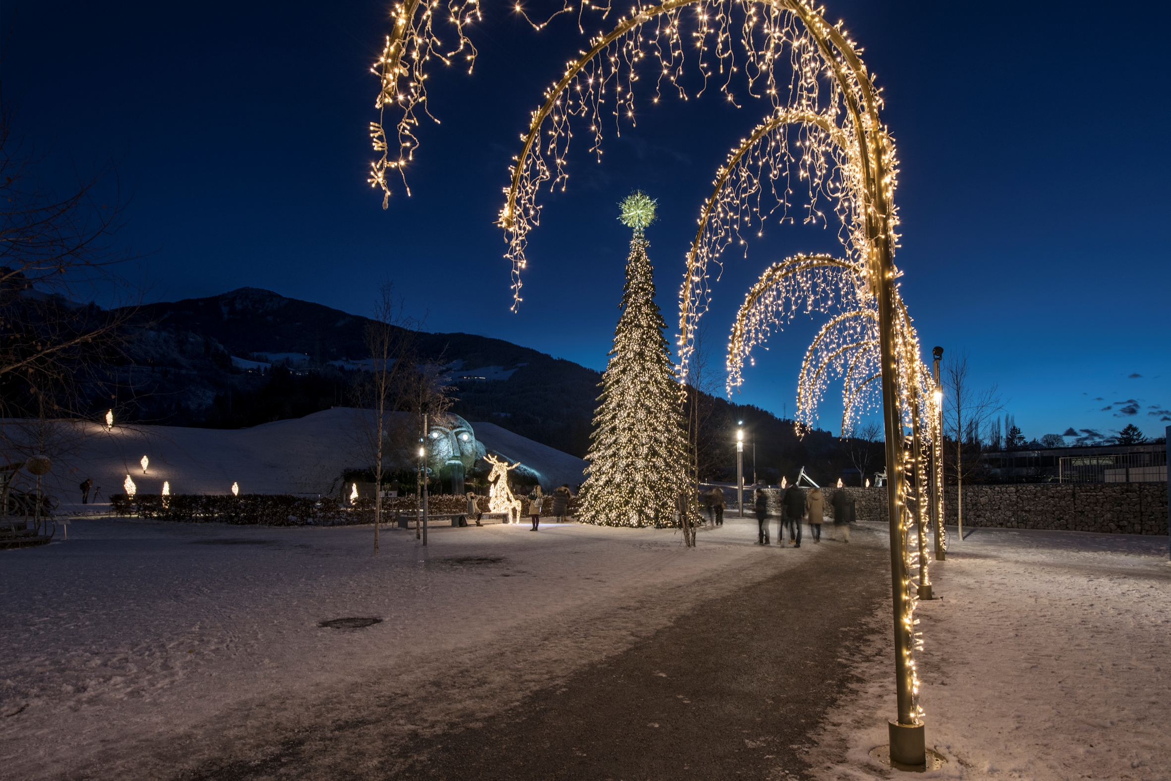 Ab 7. November 2018 erhalten die Swarovski Kristallwelten in der großzügigen Parklandschaft des Riesen wieder Besuch von hell erleuchteten Figuren, die aussehen, als wären sie direkt aus einem Märchen entsprungen. Die fröhlichen Charaktere wie Elch und Hase entstammen der Fantasie des niederländischen Designers Tord Boontje und strahlen an unterschiedlichen Plätzen im Garten mit den funkelnden Installationen aus Swarovski Kristall um die Wette. Im gesamten Park entdecken Besucher kunstvolle Lichtdekorationen, die geheimnisvoll und festlich auf die besinnliche Advent- und Weihnachtszeit einstimmen. In eine ganz eigene Winterwunderwelt lädt der Winterpavillon mit seinen drei miteinander verbundenen Kuben, in denen auf rund 60 Quadratmetern visuelle und akustische Überraschungen warten. Ebenfalls ab 7. November können Besucher den traditionellen 13 Meter hohen Weihnachtsbaum mit seinem leuchtenden Ornament an der Spitze bewundern. Gemeinsam mit den Lichtfiguren in Tord Boontjes Winterwunderwelt erfreut er die Besucher bis 13. Januar 2019, während der Pavillon die Besucher sogar bis Ende November 2019 begleitet.